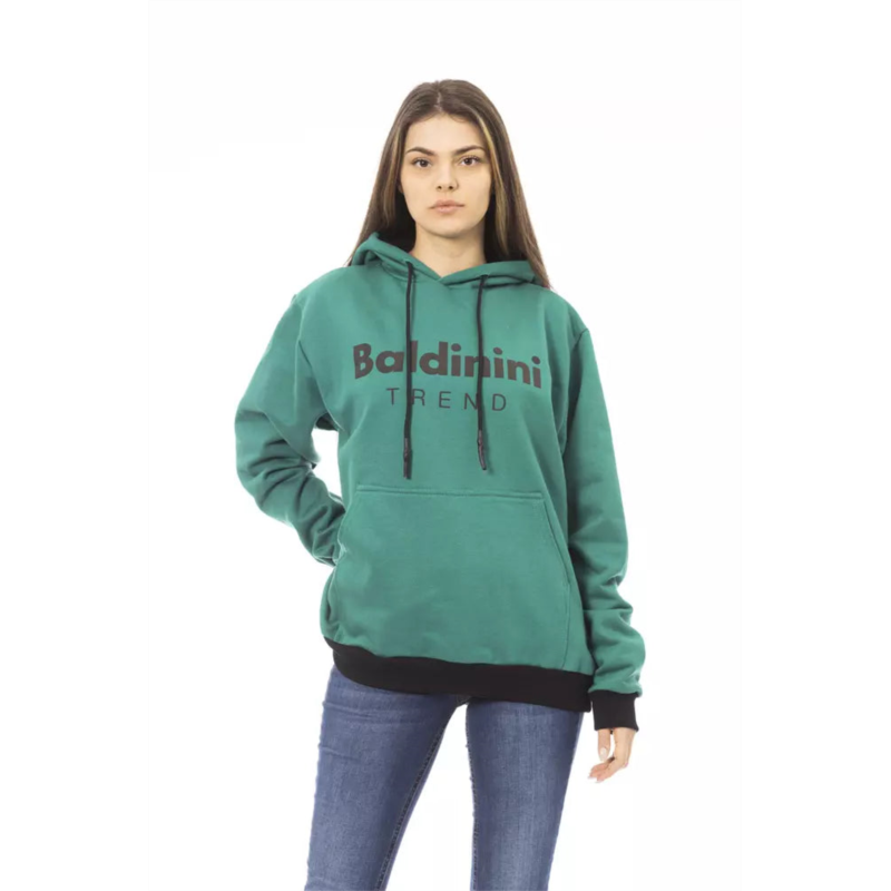 Indulge in the epitome of Italian craftsmanship with the Baldinini Trend Long Sleeve Fleece Hoodie. A seamless blend of comfort and style, this black hoodie features a bold front logo that captures attention. The maxi front pocket adds practicality to its sleek design. Perfect for the fashion-forward individual who appreciates luxury in their casual wear.