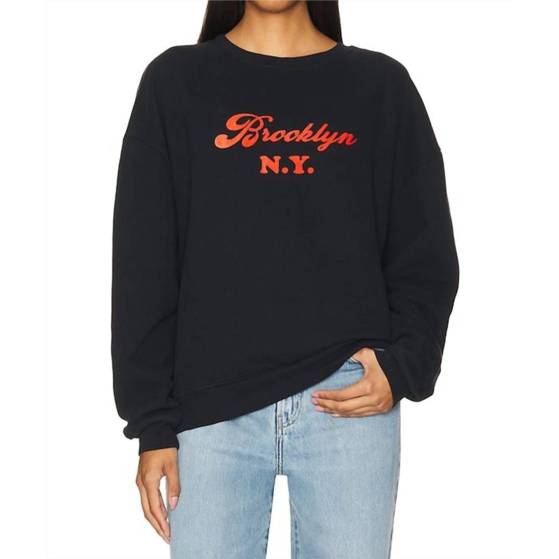 Whether you''re running around town or lounging at home, this sweatshirt works for both.The Oversized Brooklyn Sweatshirt by KULE is a must-have for any streetwear lover, made from 100% organic cotton for supreme comfort. It boasts a long sleeve, drop shoulder design, and a classic crewneck, accentuated by a Brooklyn N.Y. flocked print. This stylish black sweatshirt is crafted in Portugal, ensuring quality and a chic, oversized fit. Easy to care for, it is machine washable and features a convenient pull-on closure.