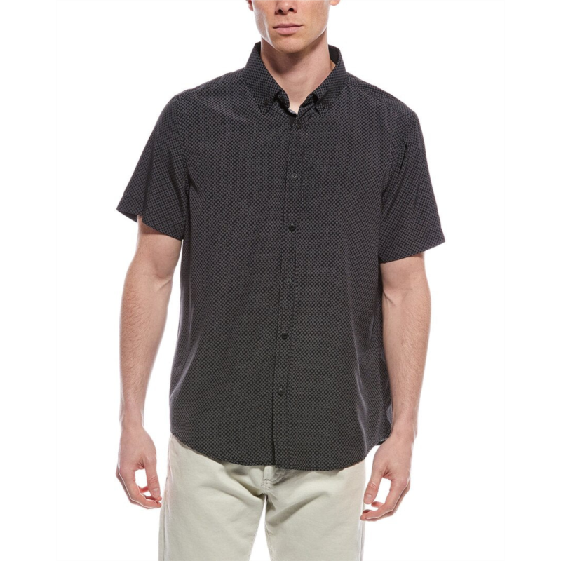 Introducing the Report Collection Geo Print Shirt, a stylish and versatile addition to your casual wardrobe. This black shirt features a unique geometric pattern, perfect for adding a modern touch to any outfit. The spread collar and button front design details offer a polished look, while the 93% polyester and 7% spandex blend ensures comfort and durability. Whether you''re heading to the office or out for drinks with friends, this shirt is sure to become a go-to favorite. Machine washable and imported, this shirt is easy to care for and perfect for on-the-go lifestyles. The model is 6''2 and is wearing a size large, with measurements that may vary slightly by size. Add the Report Collection Geo Print Shirt to your wardrobe today and elevate your everyday style.