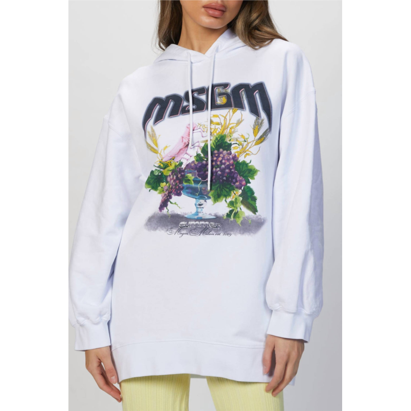 Cooler temps call for layering and we love this adorable sweatshirt for all the obvious reasons.MSGM creates cool, laid back pieces and this hooded sweatshirt is right in line with that aesthetic. This hoodie is cut for a relaxed fit and printed with the label''s logo across the chest with their Spring ''21 grape theme printed below. Wear yours on weekends with track pants or denim. Fabrication - 100% Cotton. Care - Hand wash. Standard Clothing Sizing. Alyssa is wearing size Small