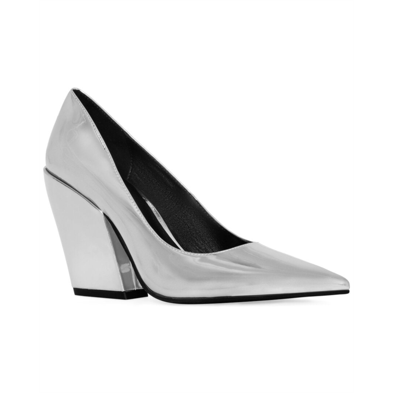 Introducing the Rebecca Minkoff West Leather Pump, a stylish addition to your shoe collection. Known for blending boho sweet with rocker chic vibes, Rebecca Minkoff brings you these silver leather pumps that are perfect for any occasion. Featuring slip-on styling and a lightly padded leather insole, these pumps provide both comfort and style. The rubber sole and 3.75-inch heel add a touch of sophistication to your look. Imported for quality, the Rebecca Minkoff West Leather Pump is a must-have for any fashion-forward woman.