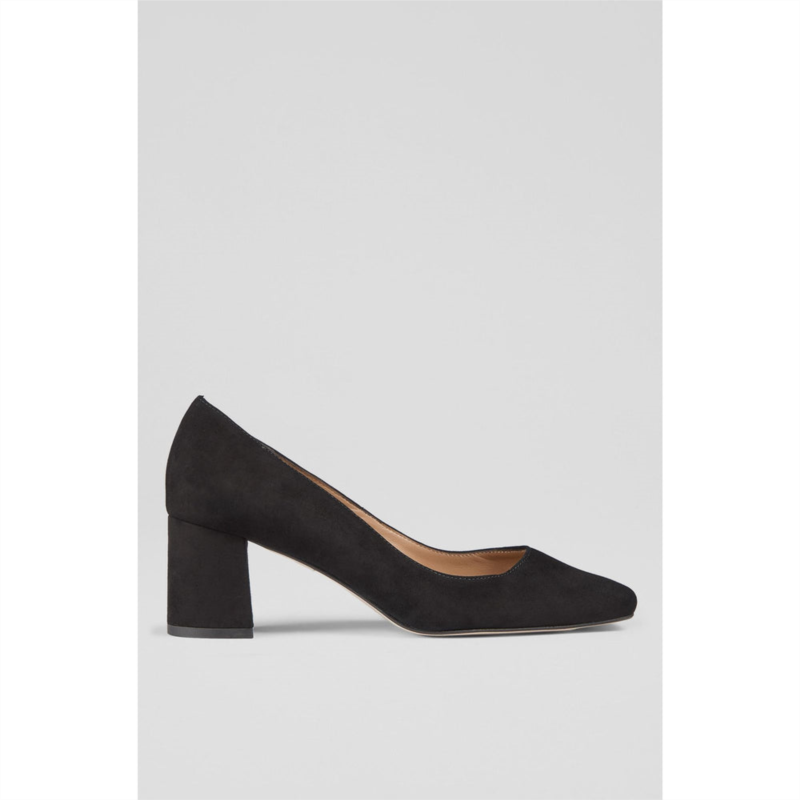 Embrace sophistication with the Sally square toe courts. In timeless black suede, this design features a square toe, leather lining, and a stylish block heel, all crafted sustainably in Spain. Perfect for work, pair these with tailored trousers or a sleek pencil skirt for an effortlessly elegant look.