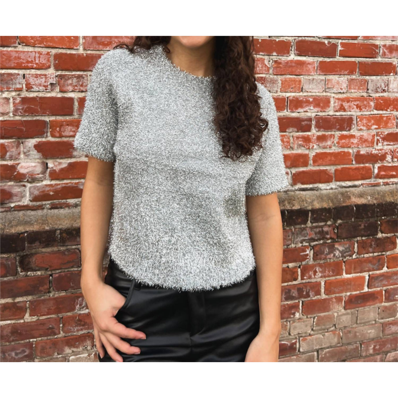[US] DESIGN HISTORY adeline short sleeve sweater top in silver