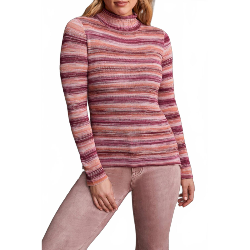 TRIBAL space dye fine knit turtleneck sweater in purple