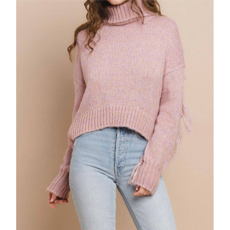 Fit to perfection and effortlessly chic.Designed with long sleeves and a unique distressed back fringe, this sweater offers a modern twist on the classic turtleneck silhouette. The luxurious blend of 50% Rayon, 28% Nylon, and 22% Polyester ensures both comfort and style. With a pull-on closure, this sweater is crafted in China and promises a chic, effortless look for any occasion. Model is wearing a size small.