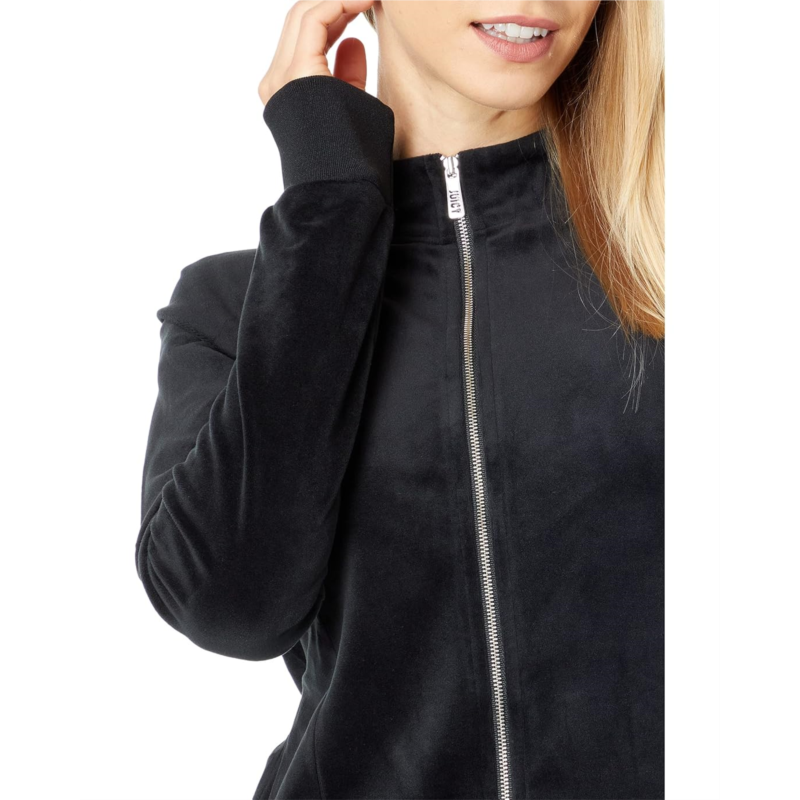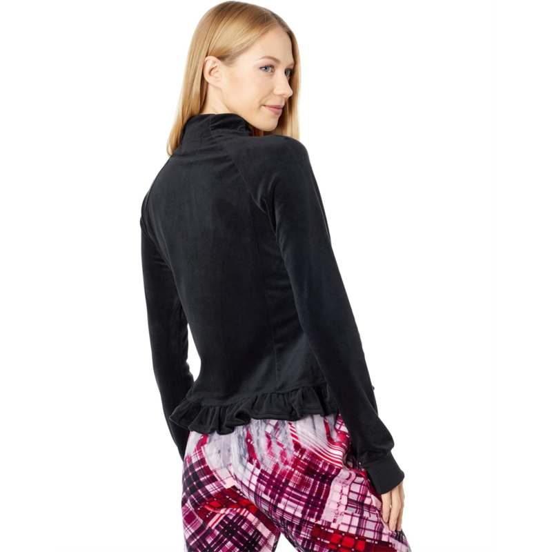 Crafted for style, comfort, and warmth, the Juicy Couture Funnel Neck Jacket features a mock collar, long sleeves with fitted cuffs, center front zip closure, front side slip pockets, and a ruffled hemline.