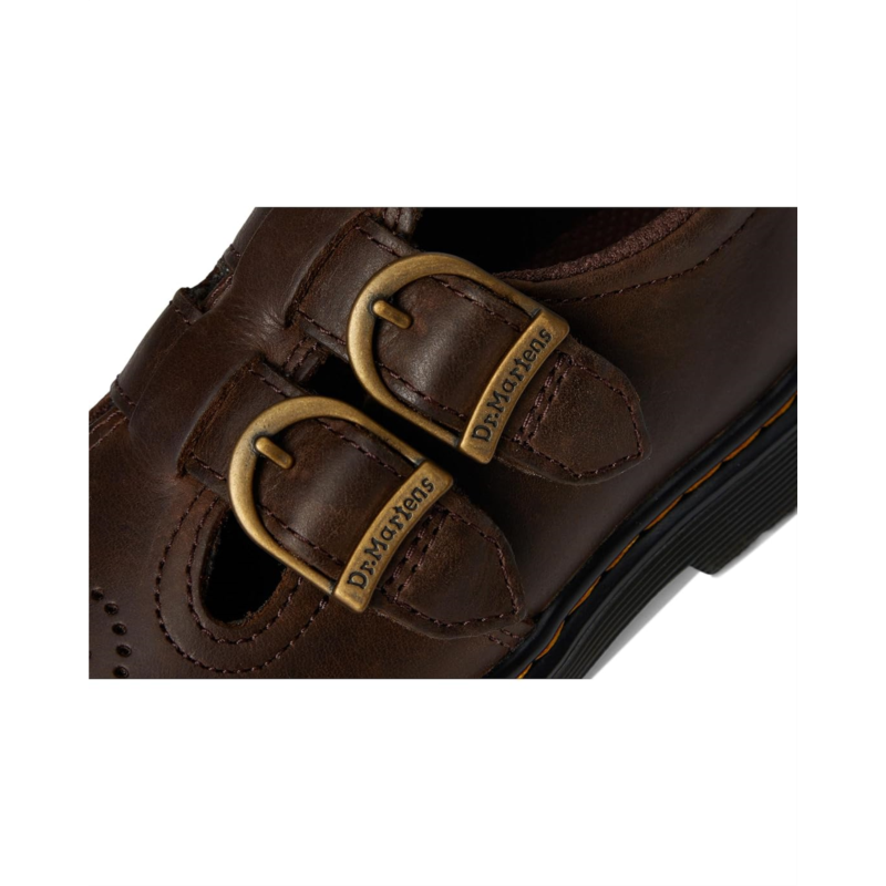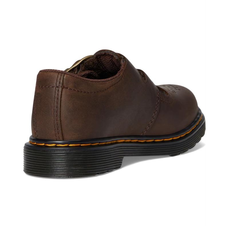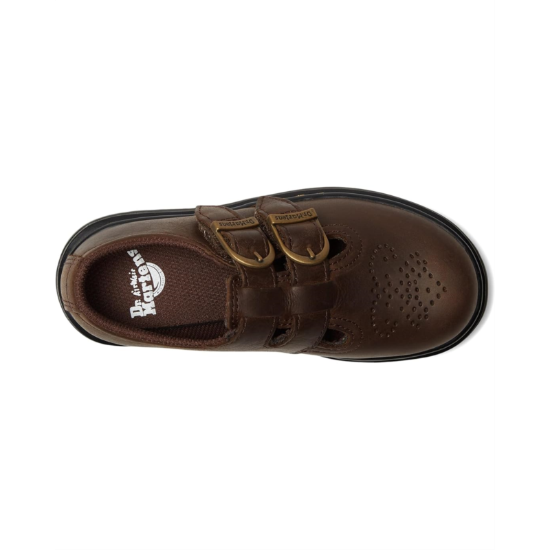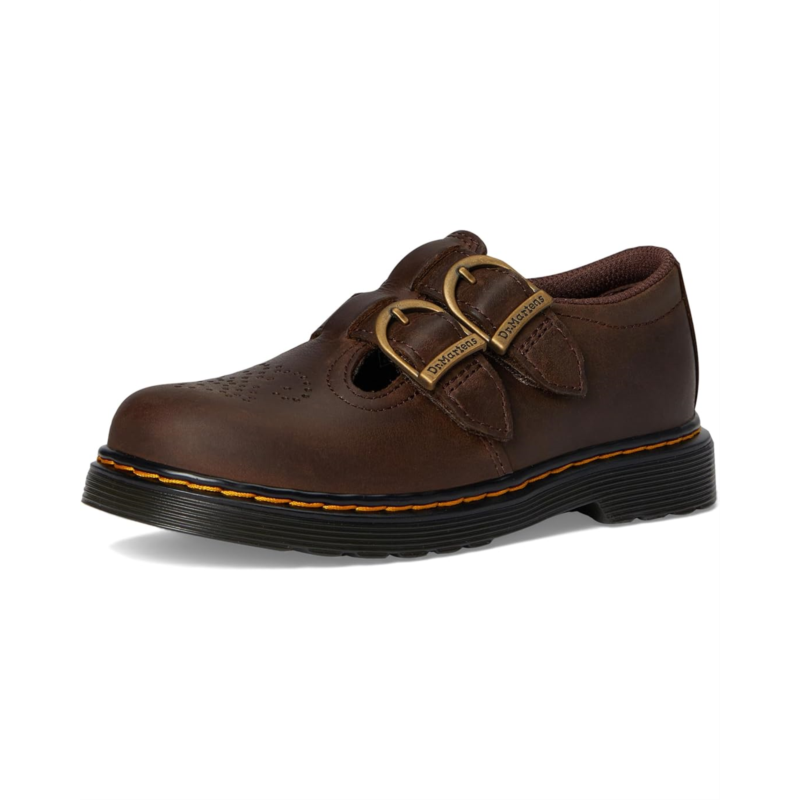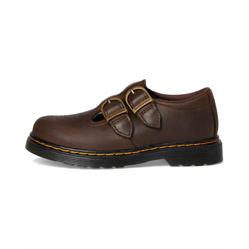 - The Dr. Marten''s Kid''s Collection 8065 J shoes are a dazzling reimagining of the classic Mary Jane silhouette, designed to stand out. Crafted from glossy patent leather upper, they''re easy to clean and built for playground-ready durability. The dual horseshoe buckles are secured with adjustable rip-tape straps, making them simple for kids to slip on and off independently. Details like the perforated brogue design across the toe, internal padded collar, and extra-flexible cemented sole with stitching add both comfort and signature Dr. Martens flair.