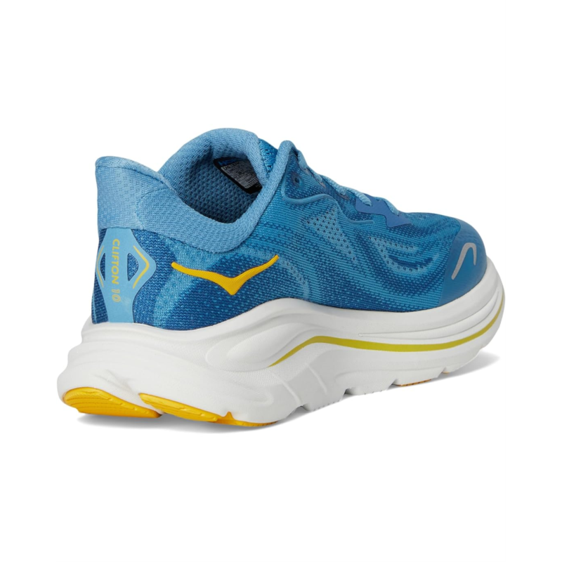- LIGHT AND PLUSH FOR EVERYDAY TRAINING. Designed for future flyers, the Clifton 10 delivers the same cushy comfort and cutting-edge performance as the adult style in a slightly smaller package. Updated with a breathable jacquard upper for enhanced airflow, cued up with a hyper cushy midsole, rugged rubber outsole, and hardwearing toe cap to keep up with up-and-coming athletes. Offered in a spectrum of endorphin-chasing hues, the Clifton 10 has been finished with reflective hits to help kids shine bright.