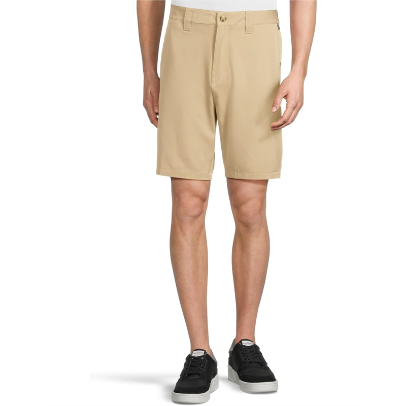 The primary materials that compose this product contain a minimum of 20 percent recycled content.- From land to sea, the Quiksilver Union Amphibian 20 Hybrid Shorts are built for adventure. Designed with a classic fit and straight-leg silhouette, these versatile board shorts blend everyday style with high-performance function. Made from a four-way stretch blend with sustainable SURFSILK fabric, they''re tough on the outside, ultra-soft on the inside, ensuring durability and comfort wherever you go. A PFC-free hydrophobic treatment makes them water-repellent and quick-drying, perfect for transitioning from surf to street. The mid-rise waist with a classic comfort waistband, zip-fly with button closure, and belt loops offer a secure, tailored fit. Functional slash pockets add convenience, keeping essentials within reach.