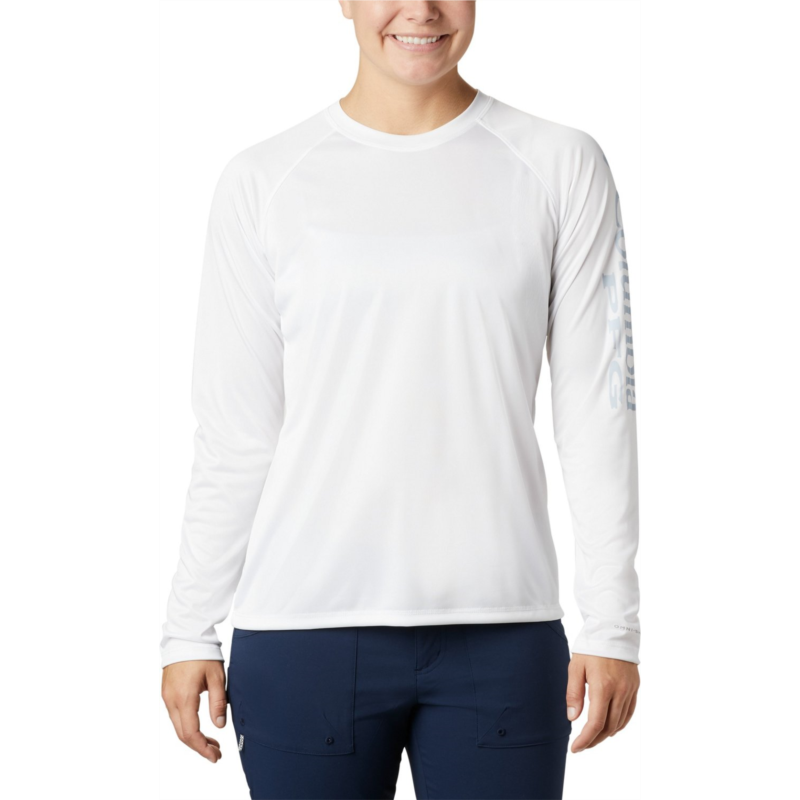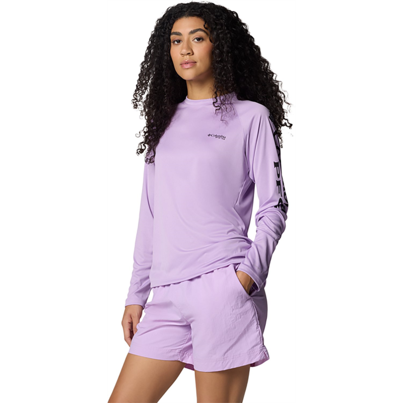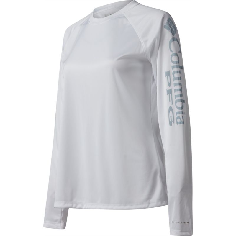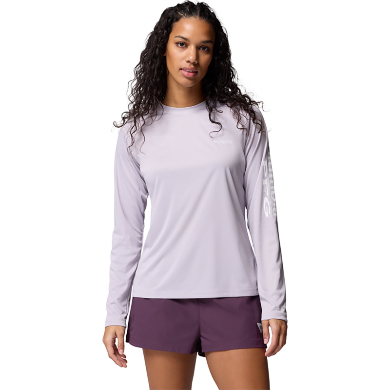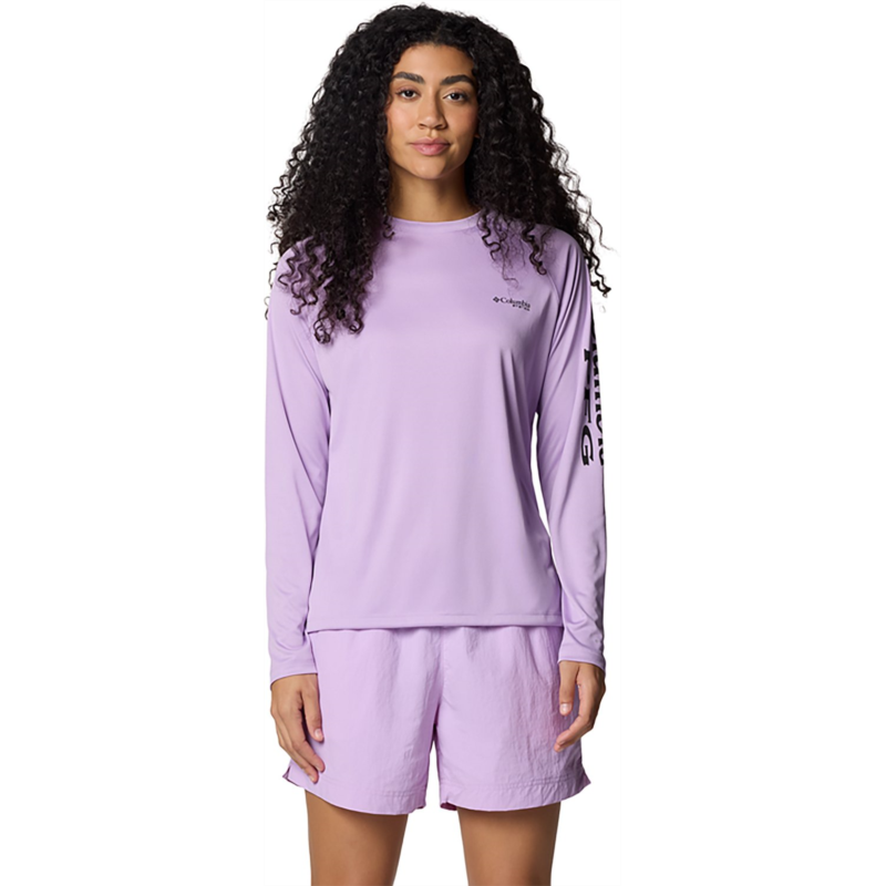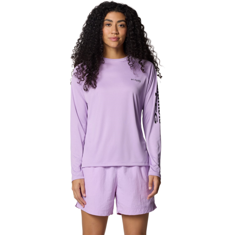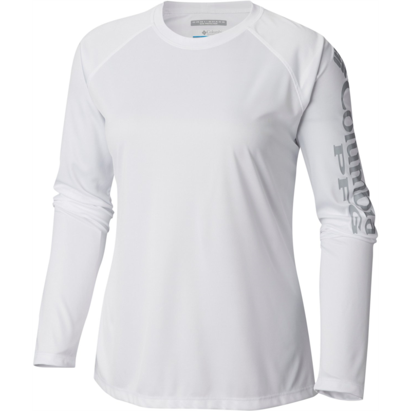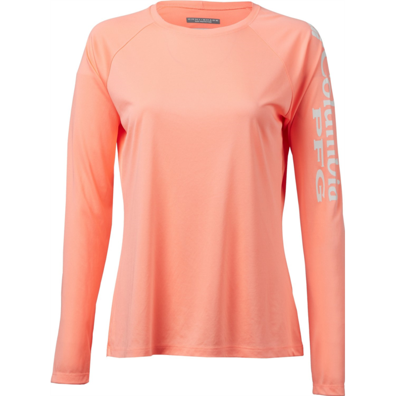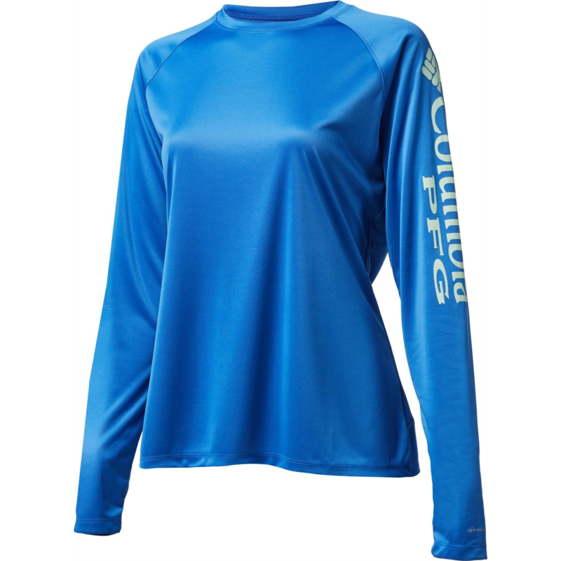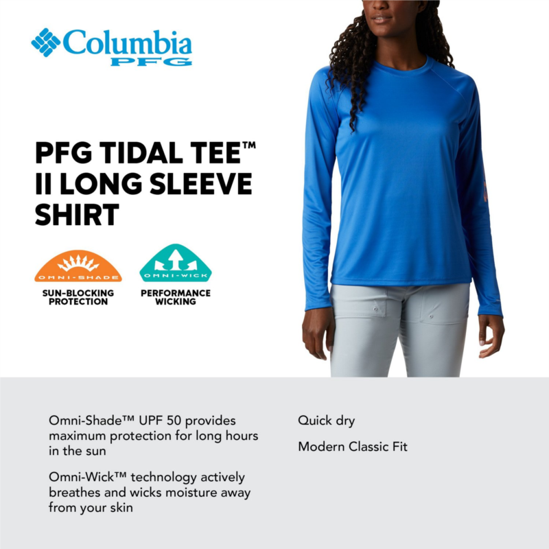 Work out in comfort and style in the Columbia Sportswear Women''s PFG Tidal Tee II Long Sleeve Shirt, which is designed with Omni-Shadea?¢ fabric technology to help protect your skin from the sun. The T-shirt is made of 100% polyester and features quick-drying Omni-Wicka?¢ fabric technology that helps pull moisture away from your body for dry, comfortable wear. Modern classic fit. Made of 100% polyester
