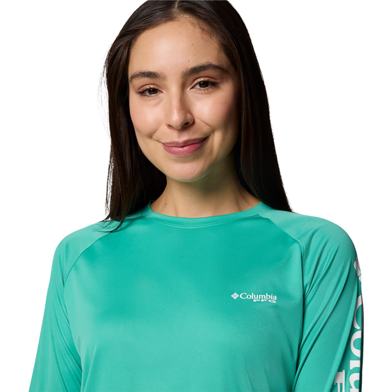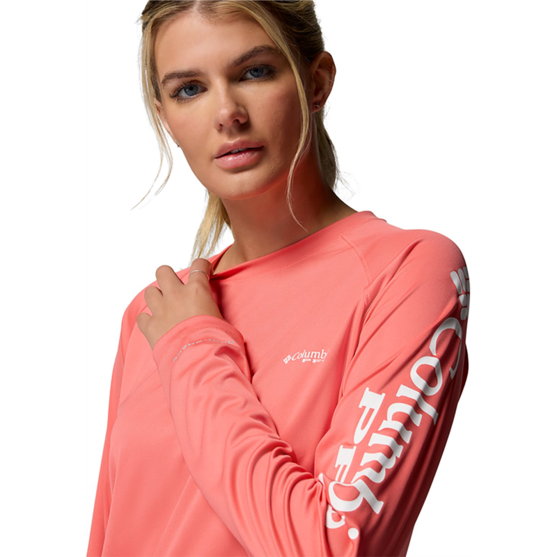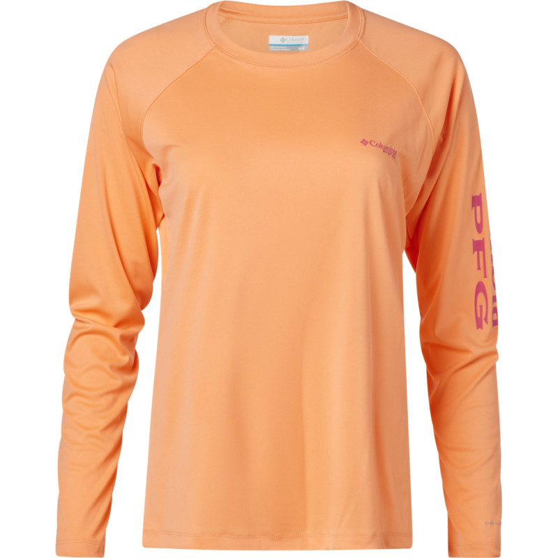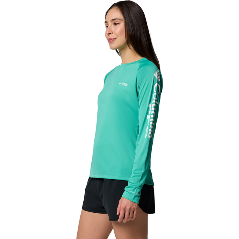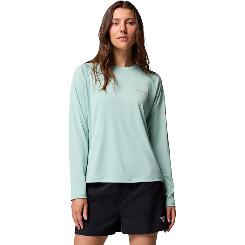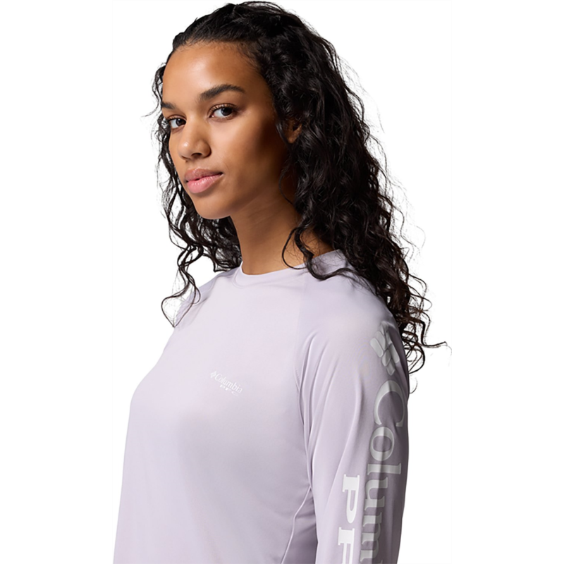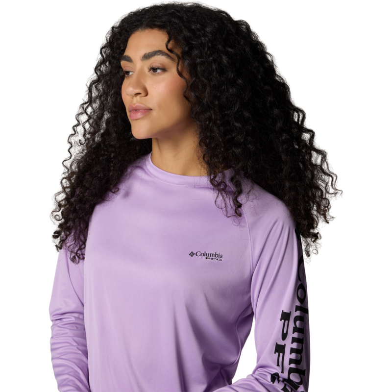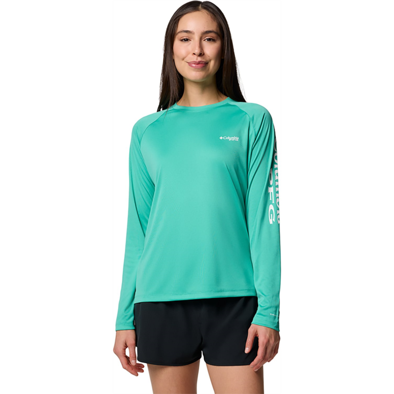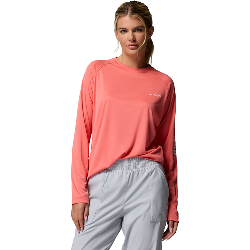 Work out in comfort and style in the Columbia Sportswear Women''s PFG Tidal Tee II Long Sleeve Shirt, which is designed with Omni-Shadea?¢ fabric technology to help protect your skin from the sun. The T-shirt is made of 100% polyester and features quick-drying Omni-Wicka?¢ fabric technology that helps pull moisture away from your body for dry, comfortable wear. Modern classic fit. Made of 100% polyester