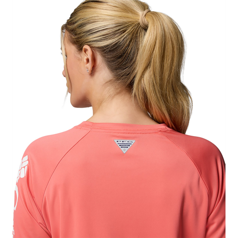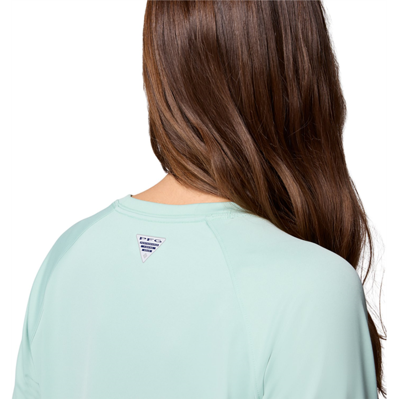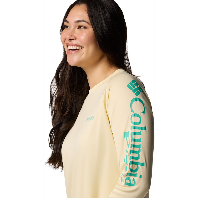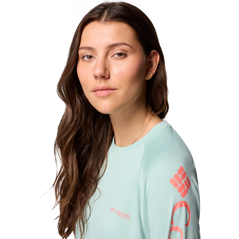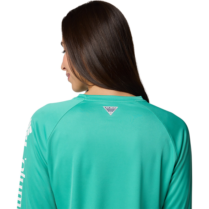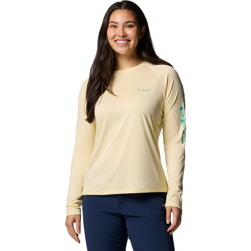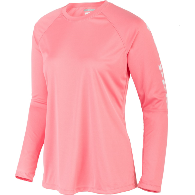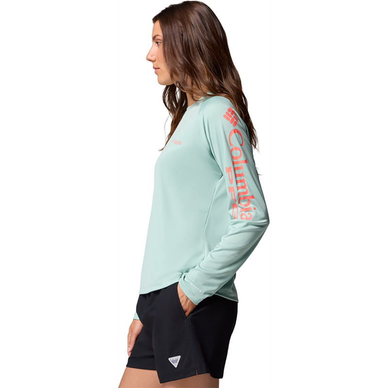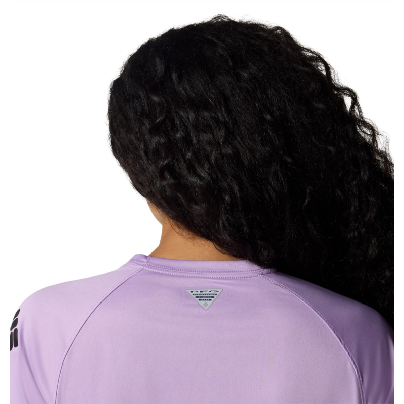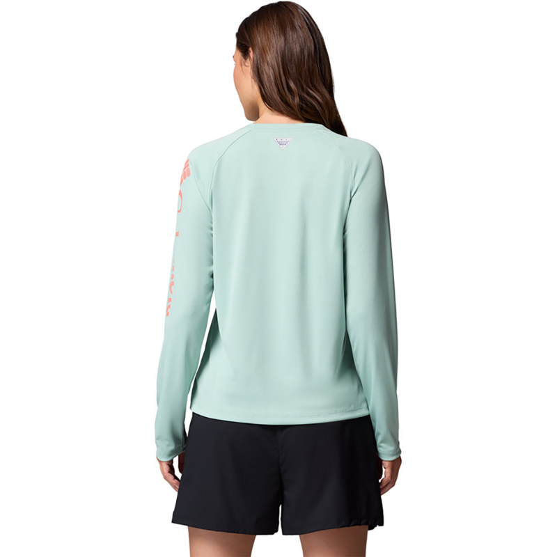 Work out in comfort and style in the Columbia Sportswear Women''s PFG Tidal Tee II Long Sleeve Shirt, which is designed with Omni-Shadea?¢ fabric technology to help protect your skin from the sun. The T-shirt is made of 100% polyester and features quick-drying Omni-Wicka?¢ fabric technology that helps pull moisture away from your body for dry, comfortable wear. Modern classic fit. Made of 100% polyester