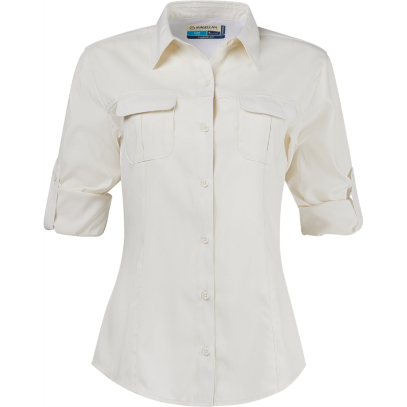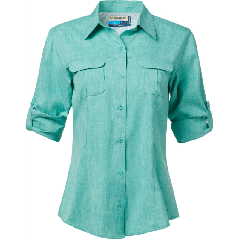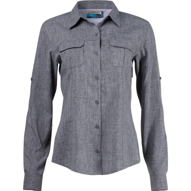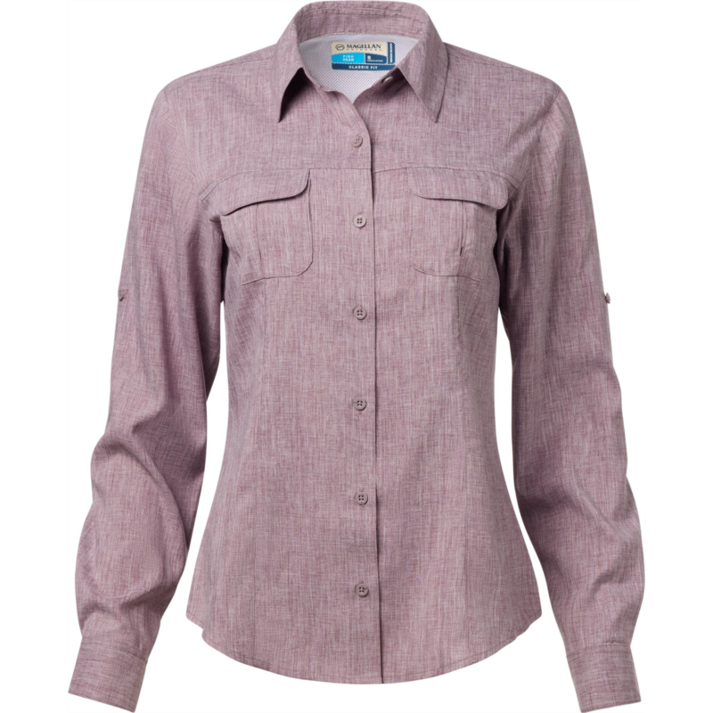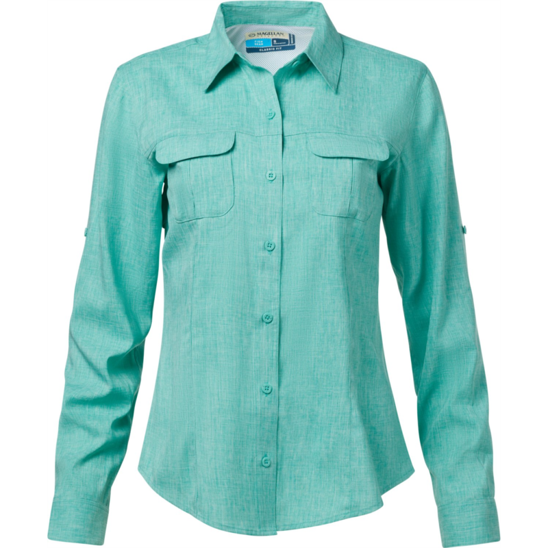 Water and sweat don''t stand a chance against the Magellan Outdoors Women''s Aransas Pass Long Sleeve Shirt. The polyester fabric wicks away moisture, so you''ll stay dry through every splash, and the UPF treatment helps keep you protected from the sun''s harmful rays. Classic Fit