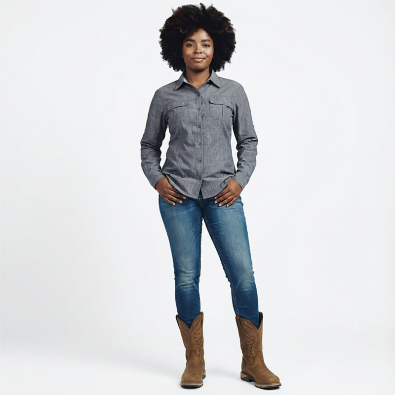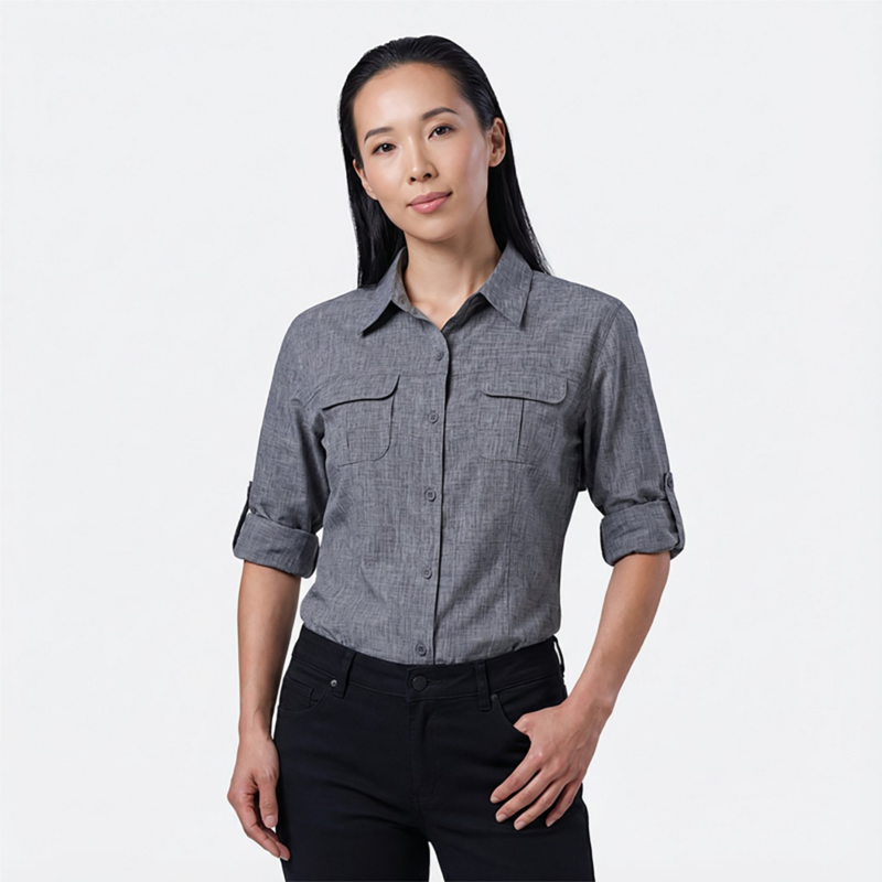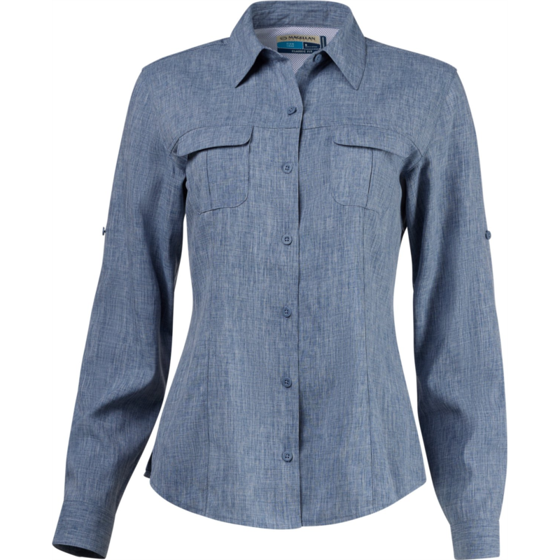 [US] Magellan Outdoors Womens Aransas Pass Long Sleeve Shirt Mood Indigo