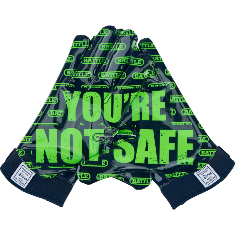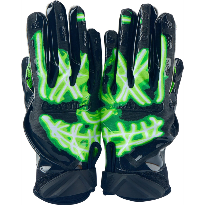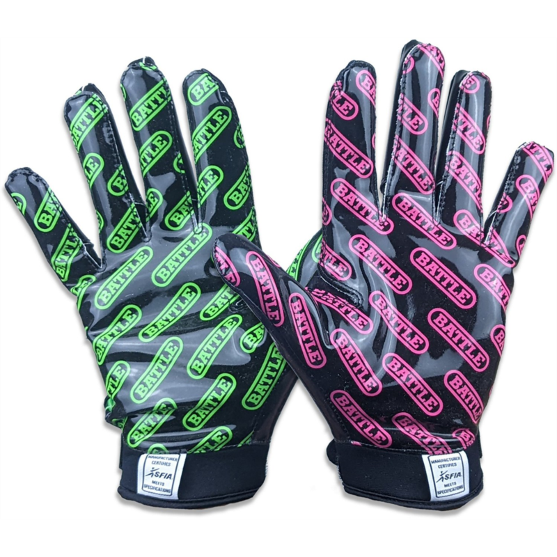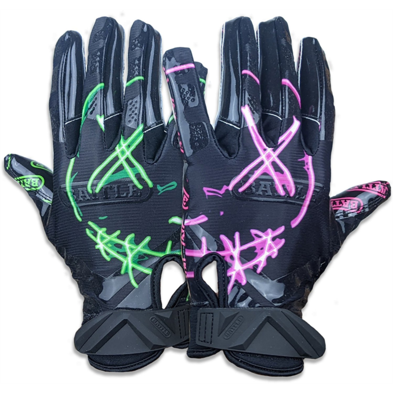 Excel on the field with the Battle Adults'' Nightmare 2.0 Football Gloves. The Ultra-Stick palms provide reliable catching performance, and the hook-and-loop closures offer an adjustable fit. Made from PerfectFit material for breathability