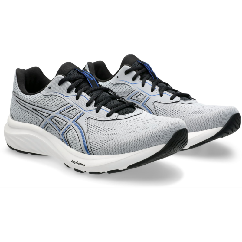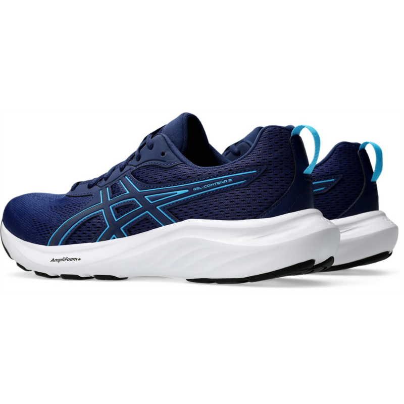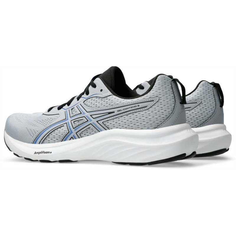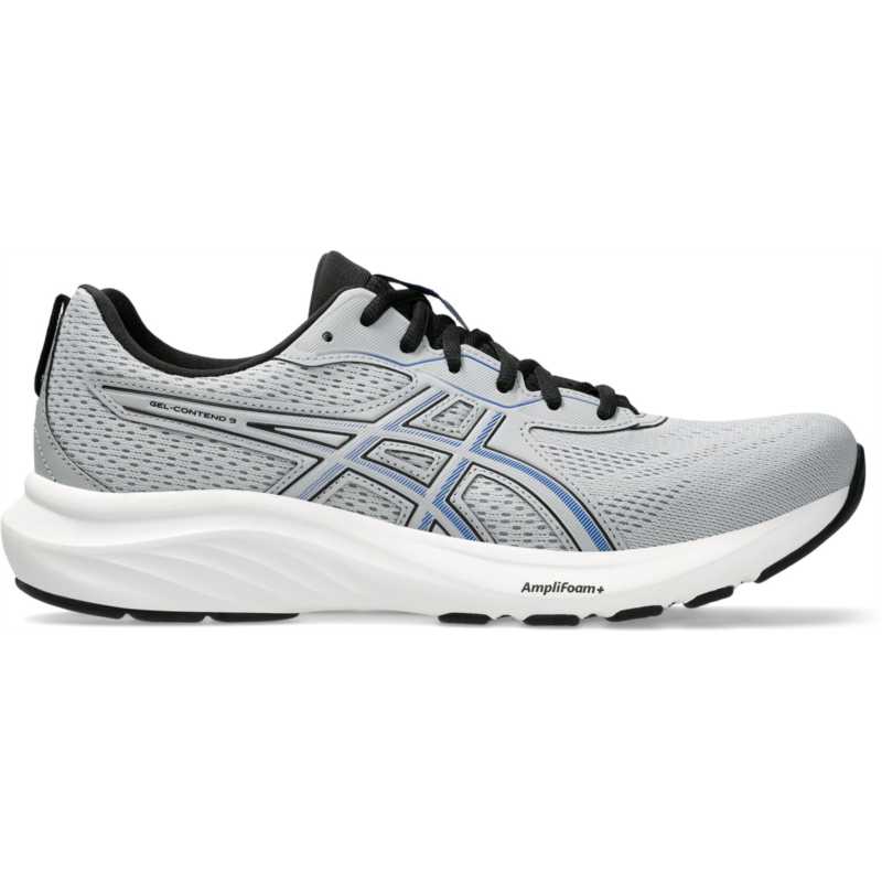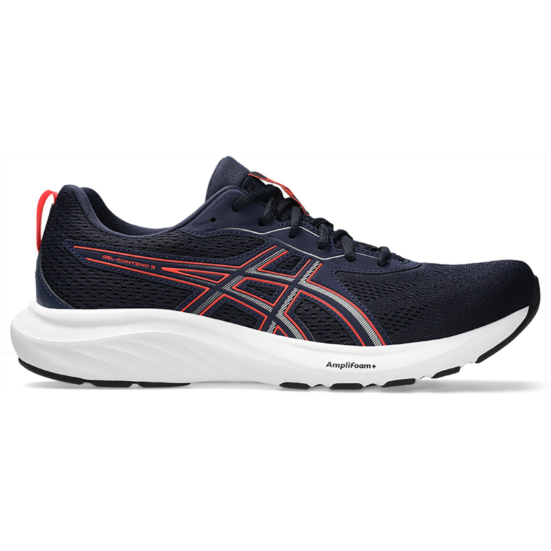 Reach your distance goals and explore comfortably with the ASICS Men''s Gel-Contend 9 Running Shoes. Engineered mesh uppers stretch with the natural motion of your feet for a comfortable fit, while the synthetic stitching on the overlays offers support. The midsoles feature GEL technology and AMPLIFOAM+ cushioning for durability and a soft feel underfoot with every step. Jacquard mesh uppers for breathable comfort