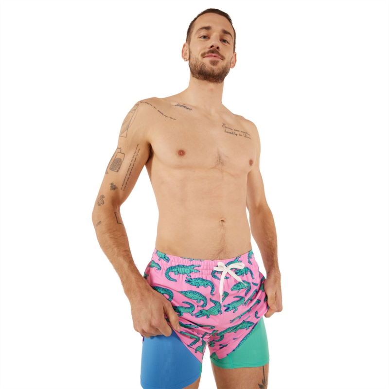 Take a dive into the pool or ocean sporting the Chubbies Men''s The Triangu-laters Lined Stretch Classic Swim Trunks 7 in. A unique pattern highlights an eye-catching appearance, and the zippered back pocket carries your phone, wallet and more when you are out of the water. The polyester and spandex construction withstands wear and tear while feeling comfortable, and the elastic waistband with a built-in drawstring lets you tighten or loosen the fit with ease. 92% polyester and 8% spandex fabric delivers comfort