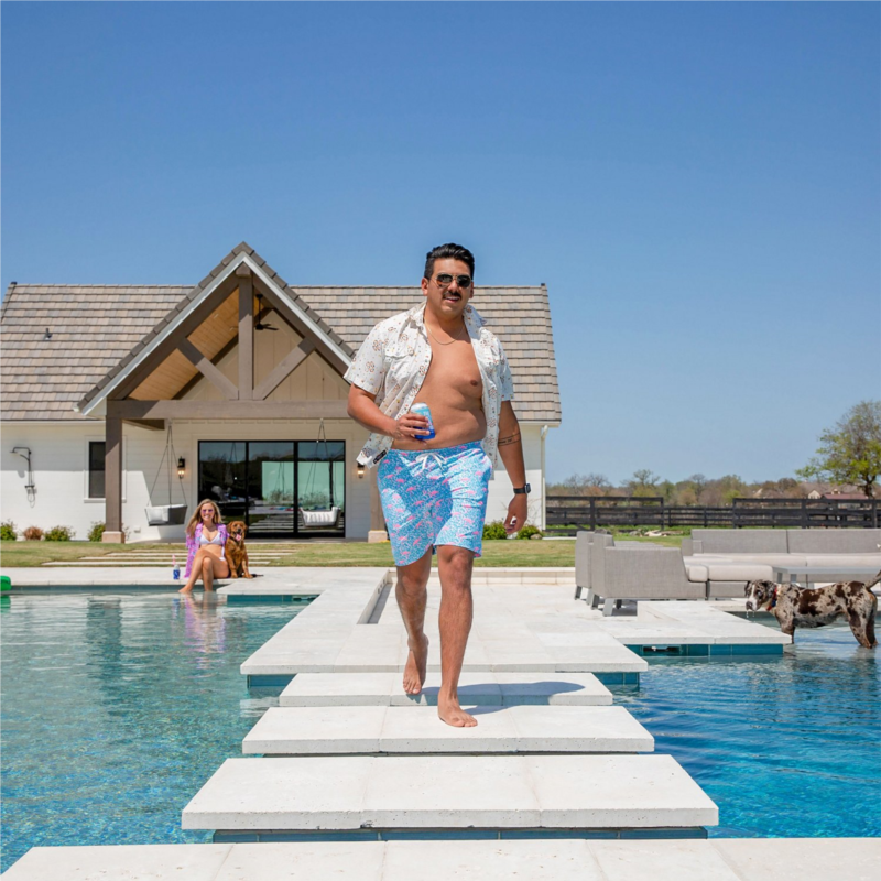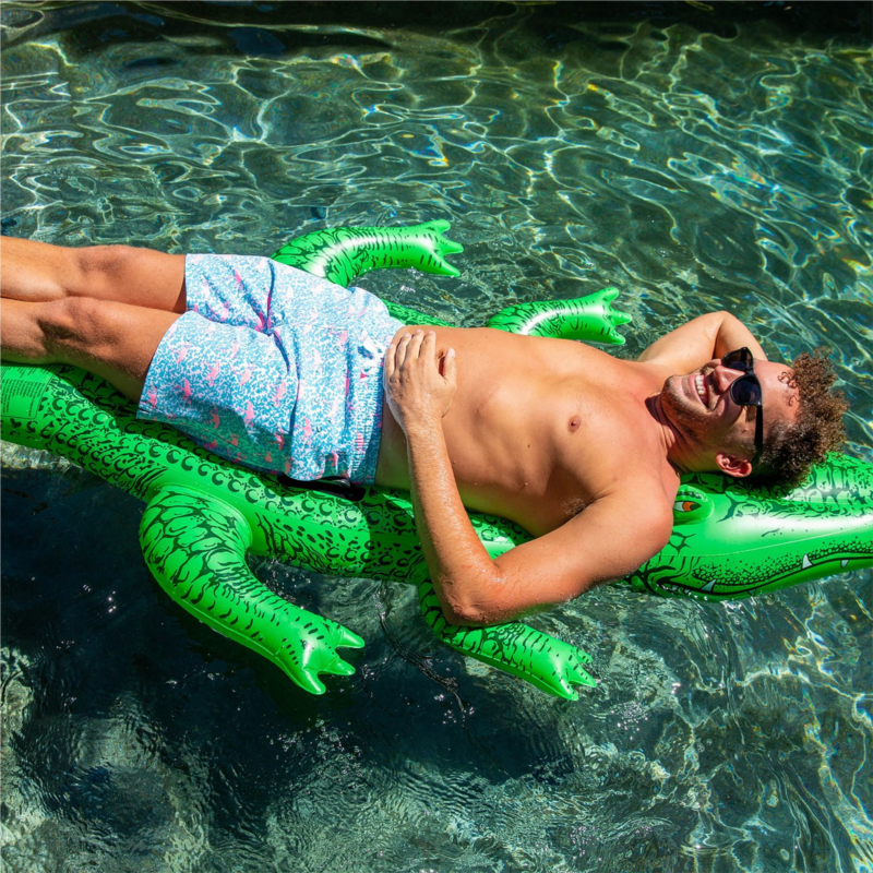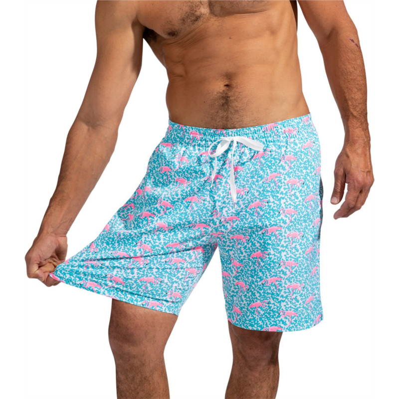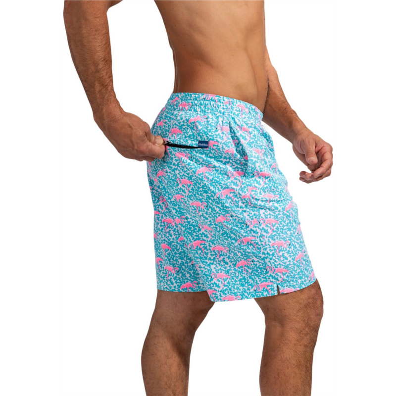 Swim with confidence with the Chubbies Men''s Domingos are Flamingos Stretch Swim Trunks 7 in. The polyester-spandex blend delivers 4-way stretch for total mobility, while the basket mesh liner breathes easily. A colorful alligator print adds aquatic style. Polyester-spandex stretch blend allows full freedom of movement