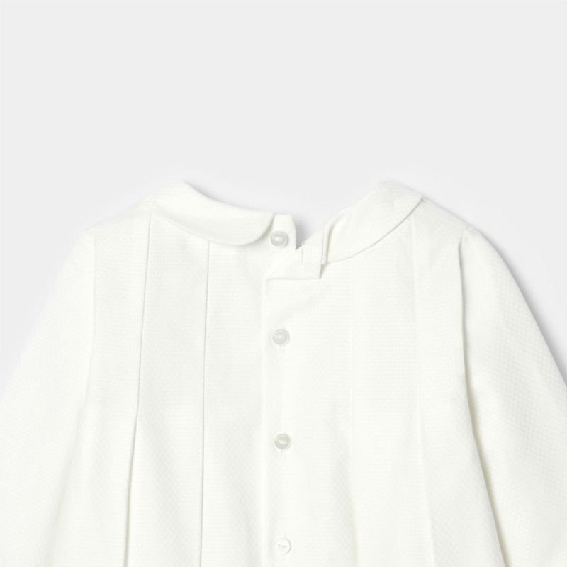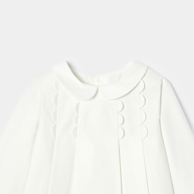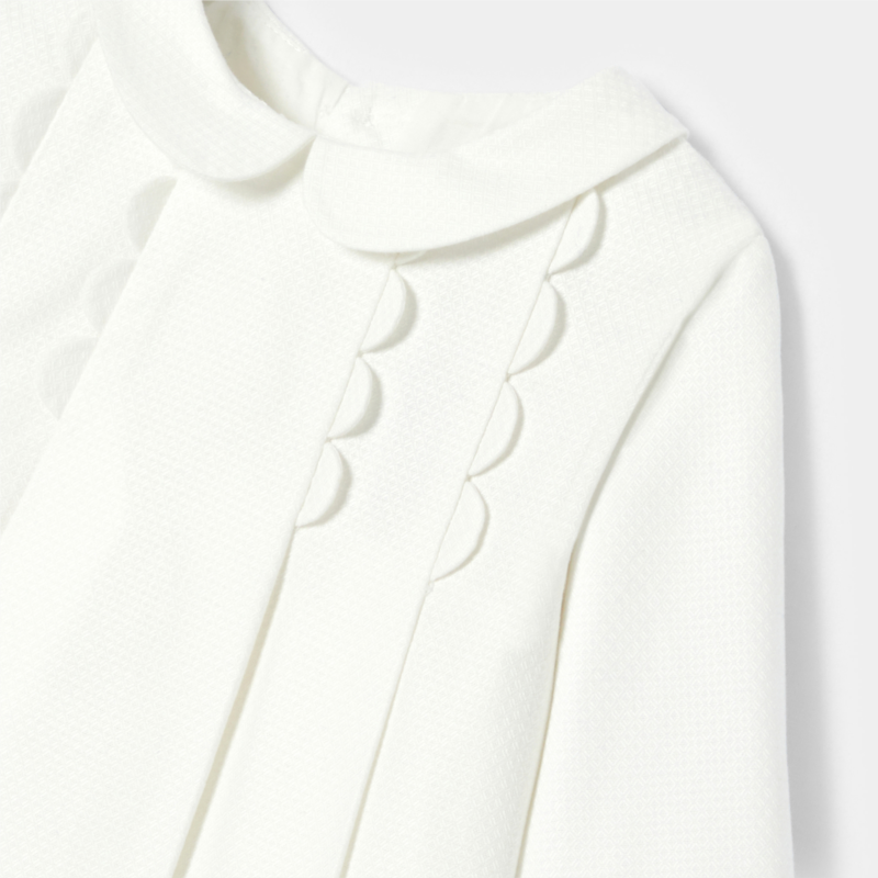 Embellished with impeccable pleating and scalloping to create volume, this baby girl dress will be perfect for the big day. Made from mini jacquard and lined with cotton voile, pair this stylish piece with a flower crown and gold ballet flats for an upcoming ceremony.