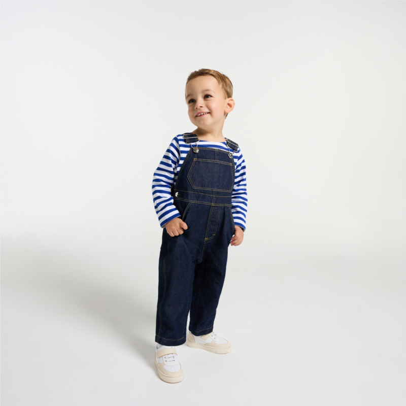 A Jacadi must-have, dungarees come in denim for a casual, urban back-to-school look. Lined for optimum comfort and easy to pair with a bodysuit, you can roll them up and match them with white trainers for everyday wear.