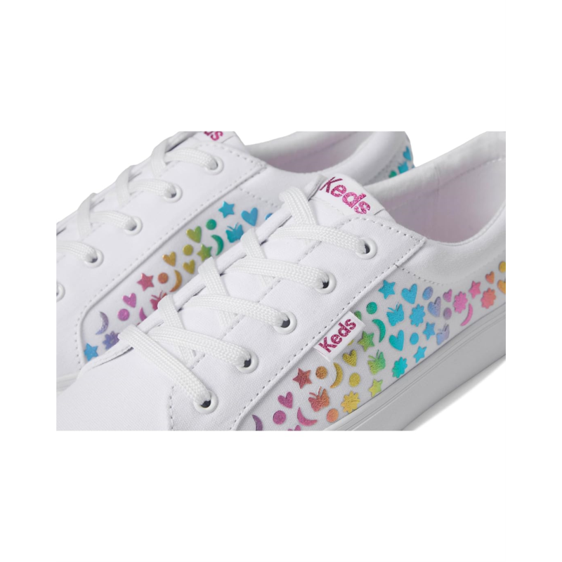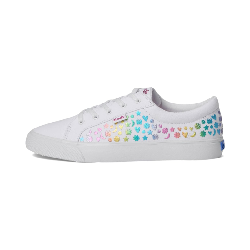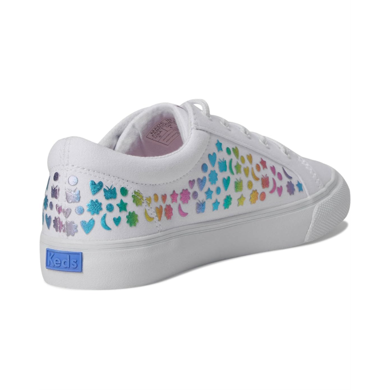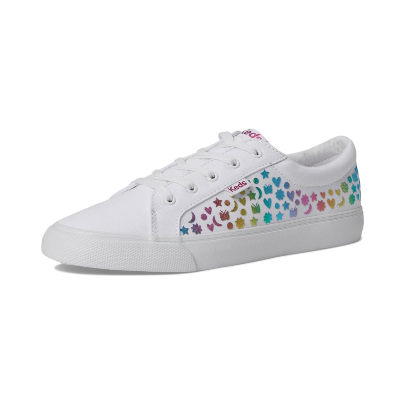 Your kid will look and feel their best wearing the Keds Kids Jumpkick Studded Foil shoes. Their canvas upper is styled with multicolored foil studs and a lace-up closure. These sneakers are made of an EVA insole, cushioned footbed, and canvas lining. Comfortable and stylish, these lace-up sneakers make a great addition to your footwear collection.
