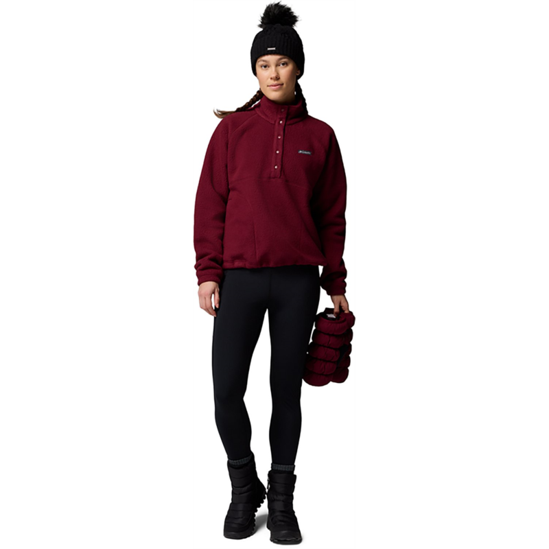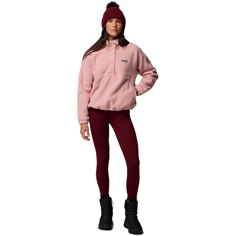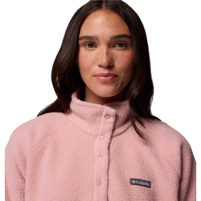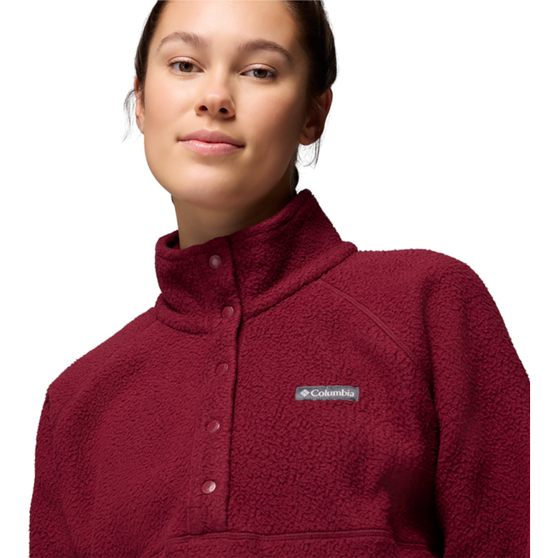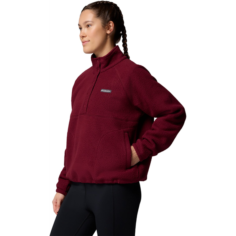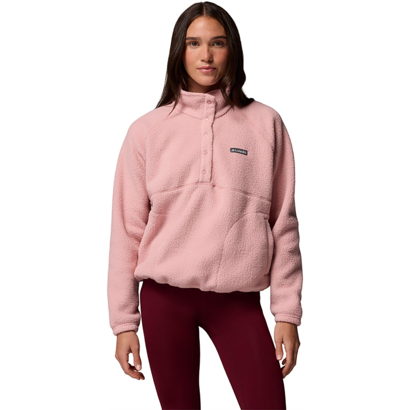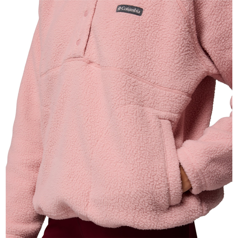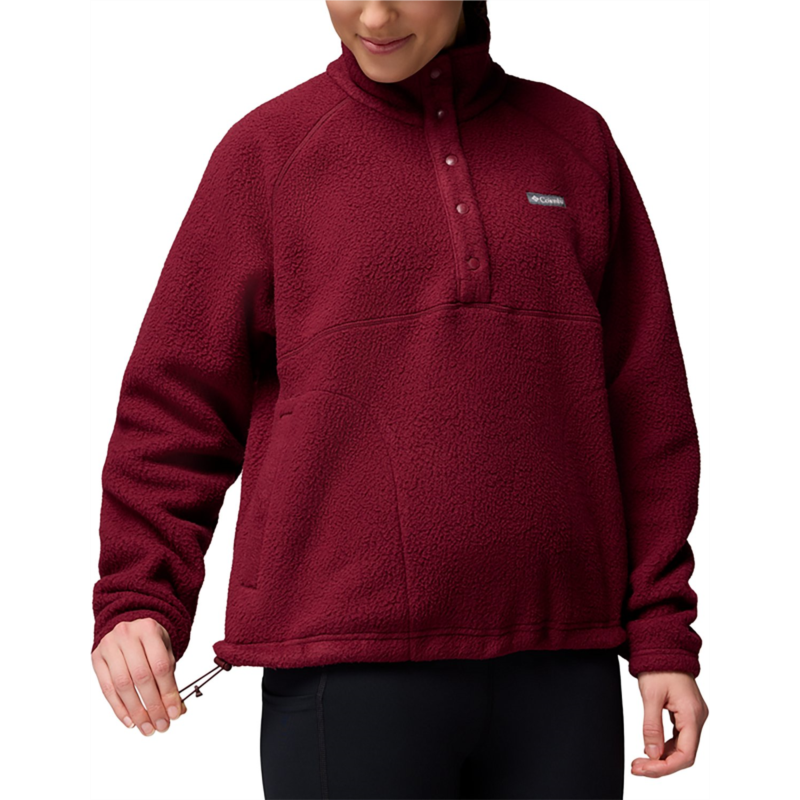 Live comfortably in the Columbia Sportswear Women''s Jasper Ridge Fleece 1/2 Snap Jacket. It is made of 100% recycled polyester. The hand pockets snap close, and its hem has an adjustable drawcord. The cuffs have elastic. Made of 100% recycled polyester