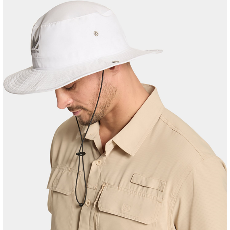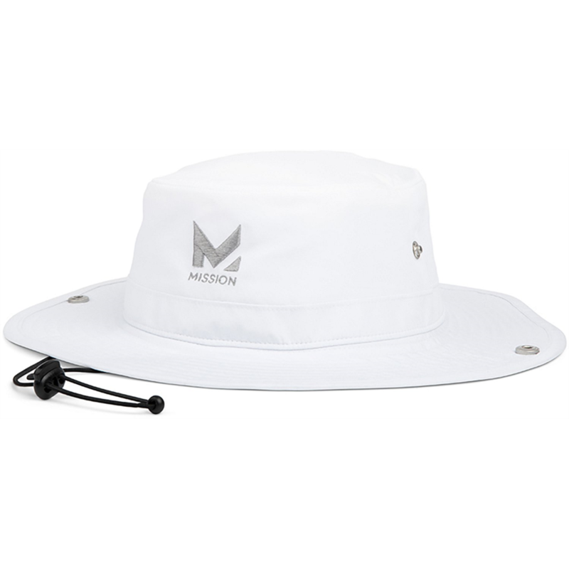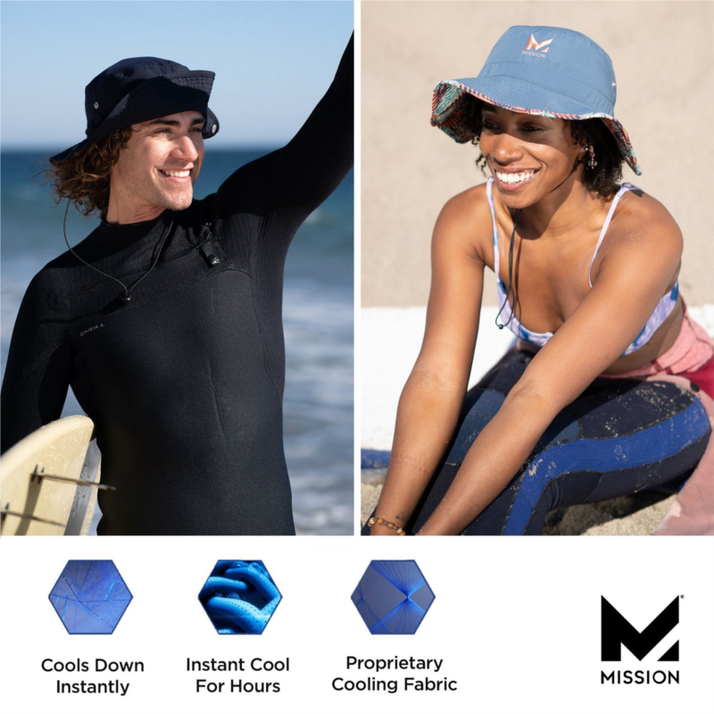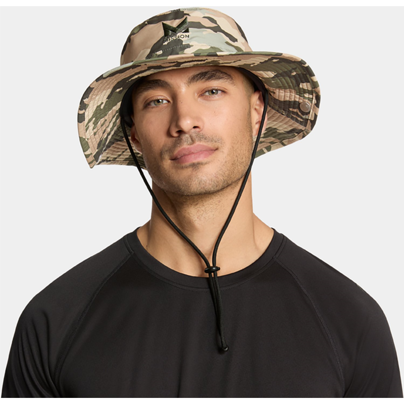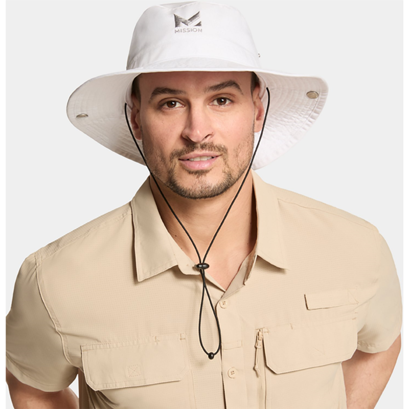 Stay cool and dry in the MISSION Men''s Cooling Bucket Hat, which is made of 100% polyester ultrawicking Eventrue fabric that pulls sweat from the body for quick drying and features proprietary inner fabric that cools instantly when soaked with water, wrung out and snapped in the air. UPF 50 sun protection. 100% polyester ultrawicking Eventrue fabric pulls sweat from the body for quick drying