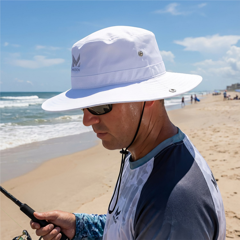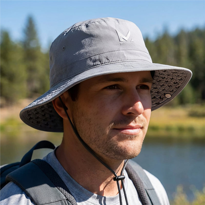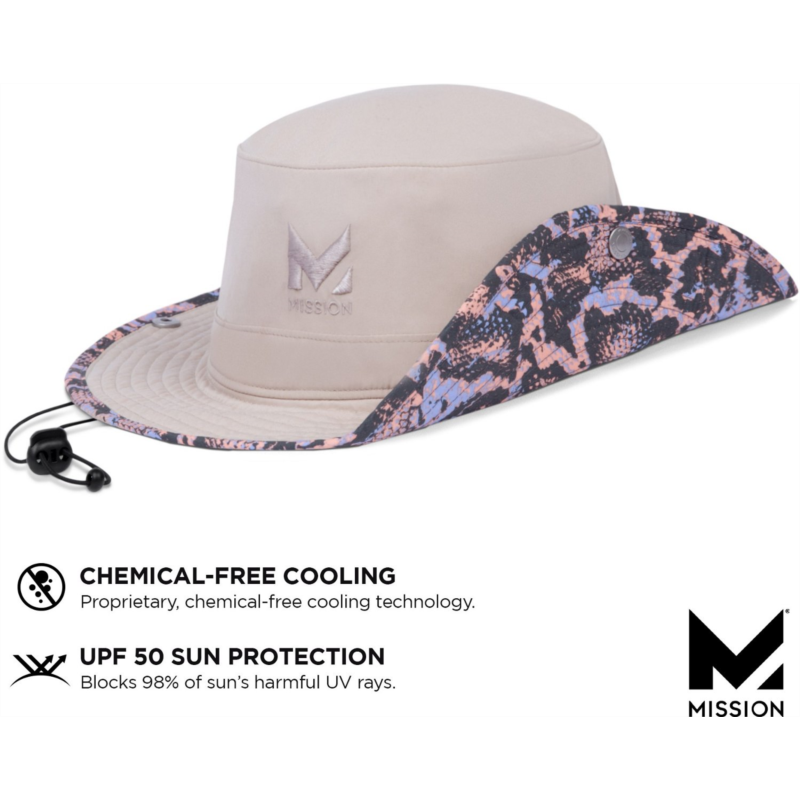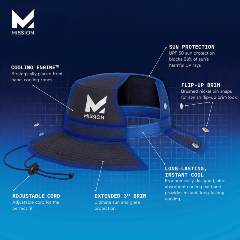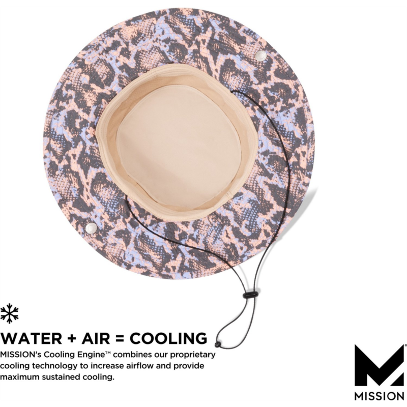 Stay cool and dry in the MISSION Men''s Cooling Bucket Hat, which is made of 100% polyester ultrawicking Eventrue fabric that pulls sweat from the body for quick drying and features proprietary inner fabric that cools instantly when soaked with water, wrung out and snapped in the air. UPF 50 sun protection. 100% polyester ultrawicking Eventrue fabric pulls sweat from the body for quick drying