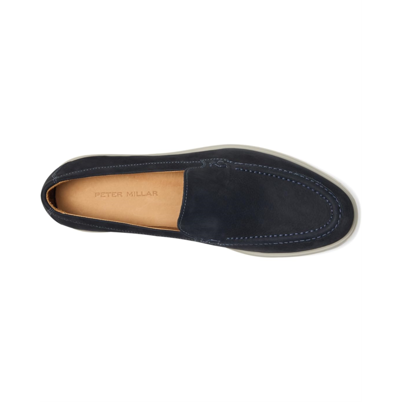 - Elevate your casual footwear collection with the Peter Millar Excursionist Nubuck Venetian Loafers. Crafted with a luxurious leather upper and lined with soft leather lining and insole, these loafers offer both style and comfort. The low-top silhouette adds a modern touch to this classic design.