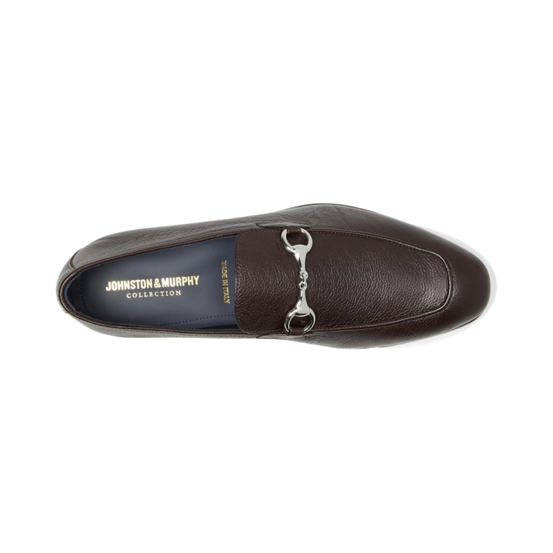 - Beyond the expected: The Johnston & Murphy Collection Taylor Bit. Designed for the discerning gentleman, this sleek loafer blends streamlined shaping with an updated, on-trend silhouette. The fine leather or suede upper exudes luxury, while the silvertone bit adds a polished touch. Experience all-day comfort with a cushioned, leather-covered footbed, offering plush support with every step. Its slim, flexible sole ensures a feather-light feel, perfect for those who demand both elegance and ease. With its slip-on design and sleek leather sole, this loafer is the ultimate go-to for effortlessly refined style.