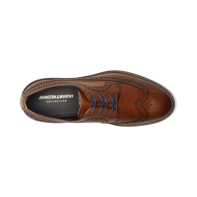 - Be the modern gentleman wearing the Johnston & Murphy Collection Jenson Longwing. Crafted from soft leather upper, it features lace-up closure for a snug fit. It comes with leather lining and cushioned, leather-covered footbed for comfortable wear all day long.