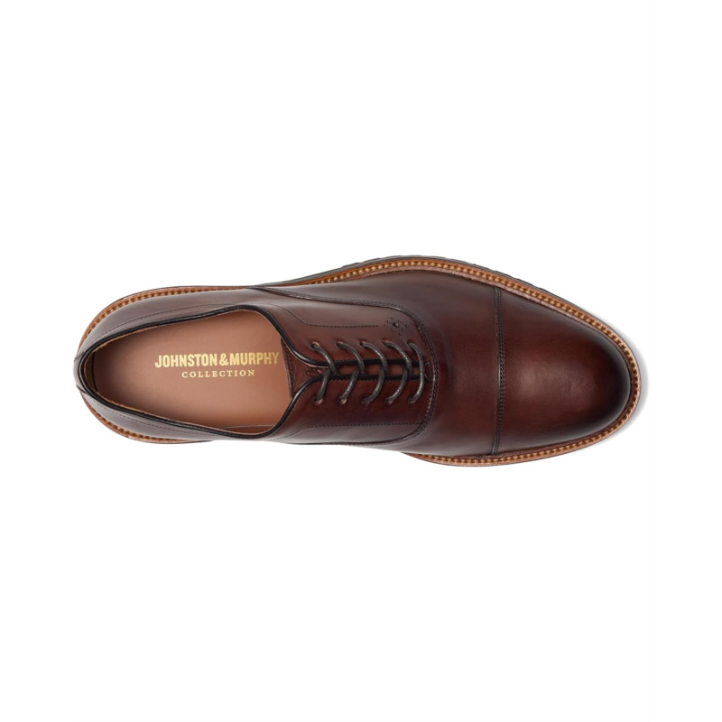 - Complete your professional look by pairing your formal outfits with the Johnston & Murphy Collection Hartford Cap Toe Oxfords. The lace-up oxfords come with an Italian calfskin upper, leather lining, and a contoured removable polyurethane footbed. Flexible, Vibram EVA outsole provides a lightweight, cushioned feel with the durability of and traction of rubber