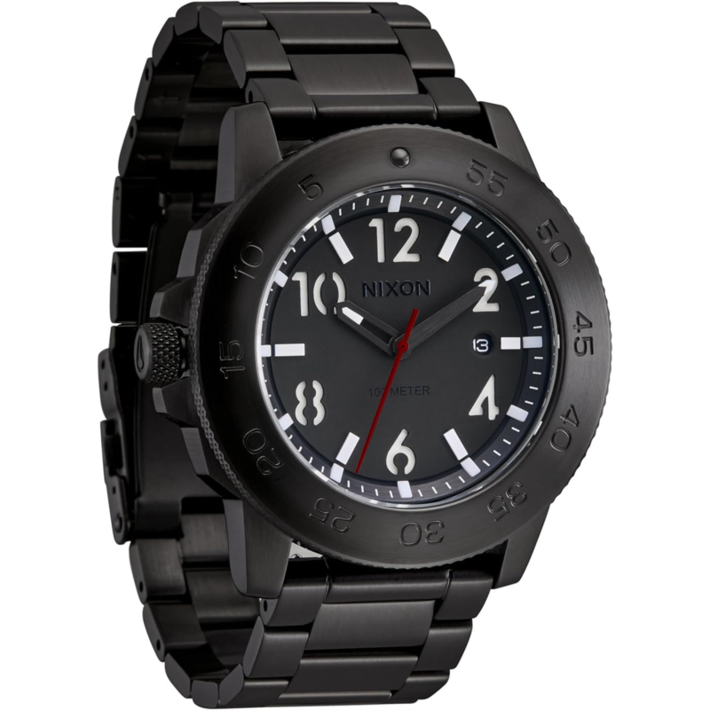 - Enhance your style wearing the Nixon Smyth 44: a fusion of innovation and craftsmanship. Powered by Miyota 2117 Japanese quartz movement, it ensures precise timekeeping. Crafted with a durable sapphire crystal and a stainless steel case, this timepiece exudes timeless elegance. Perfect for creators on the go, it features Super-LumiNova for enhanced visibility in low light and a unidirectional stainless steel bezel. The 3-link stainless steel band and deployment clasp offer comfort and security. With a screw-down crown and stamped numbered dial, the Smyth 44 blends utility with sophistication, making it essential for those who value both form and function.