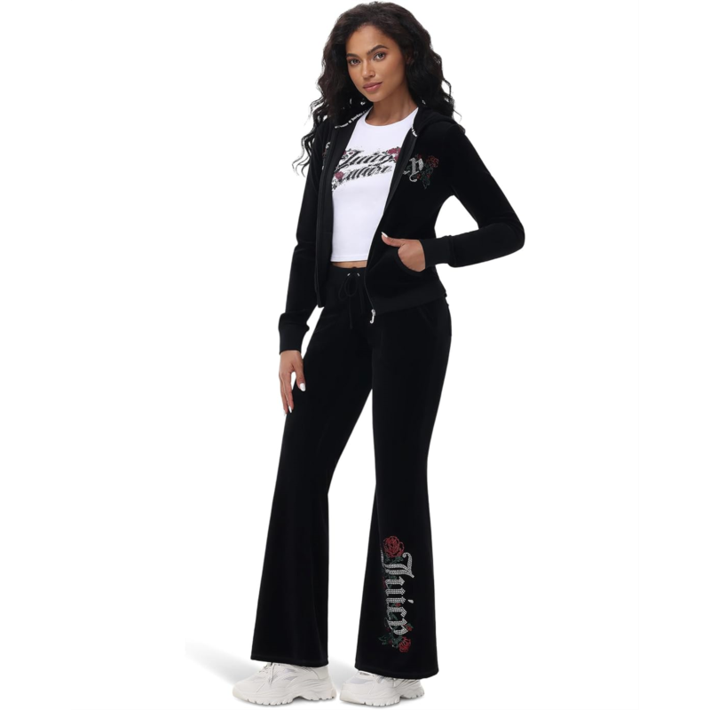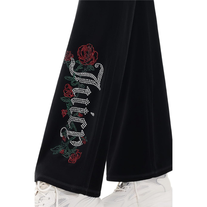 Step up your athleisure game with these stylish and comfortable Juicy Couture Heritage Low Rise Snap Pocket Track Pants designed for active lifestyles. These wide-legged track pants feature a wide elasticized waistband with drawcord detail.