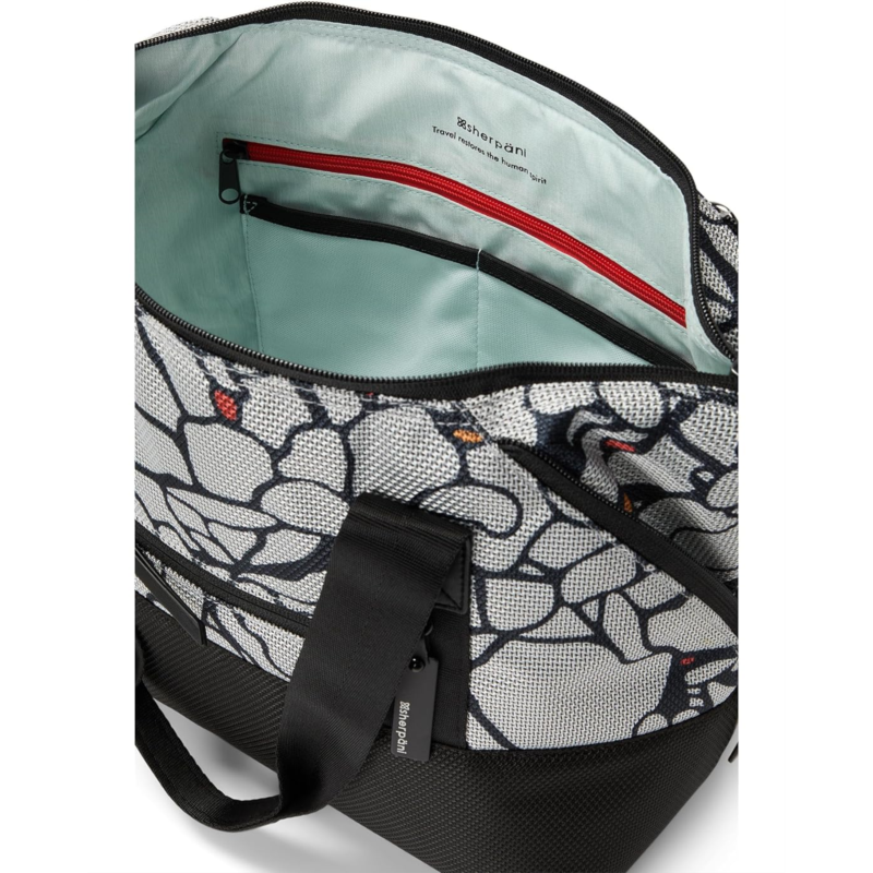 - Carry your world in the Sherpani Eclipse AT. Made using theft prevention technology, locking zippers, and RFID protection this classy and spacious bag features zippered closure, two shoulder straps, trendy shape with corner zippers that expands the bag size, loop chair lock, and slash-proof bottom.