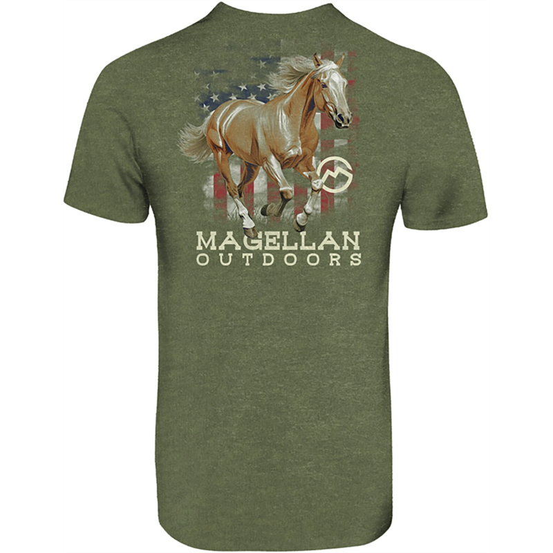 Show off your sense of style when you wear the Magellan Outdoors Men''s Flowing Mane T-shirt. The cotton construction offers a comfortable feel all day long, while the screen-printed graphics add an eye-catching appearance. Original fit