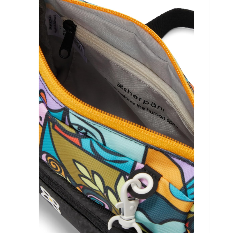- The Sherpani Skye bag is a compact yet surprisingly spacious mini crossbody and shoulder bag designed for everyday versatility. Crafted from recycled polyester, it''s part of Sherpani''s Essentials Collection and features RFID protection, water-resistant fabric, and a lightweight, vegan construction. The Skye offers a 4-liter capacity, with smart storage including a main zippered compartment, exterior zip pocket, two interior zip pockets, and a built-in key leash. It comes with two detachable straps?a short shoulder strap and an adjustable crossbody strap?allowing you to wear it your way.