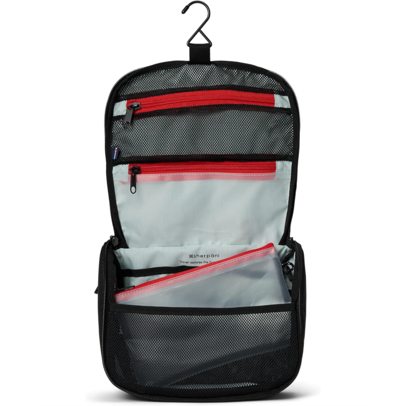 - Say goodbye to messy counters and hello to the Sherpani Co-Pilot Travel Toiletry Case, your go-to for stress-free travel organization. Crafted from durable recycled polyester, this compact case is loaded with smart storage: a front zipper pocket, hanging hook for vertical access, and a flap with both mesh and clear zipper compartments. The roomy main compartment features four slip pockets and three mesh slip pockets to keep your essentials sorted. A removable wet pouch handles spills with ease, while a key leash adds extra convenience. Whether you''re hopping hotel rooms or living out of a suitcase, the Co-Pilot''s haul handle and hang-anywhere design make transitions seamless.