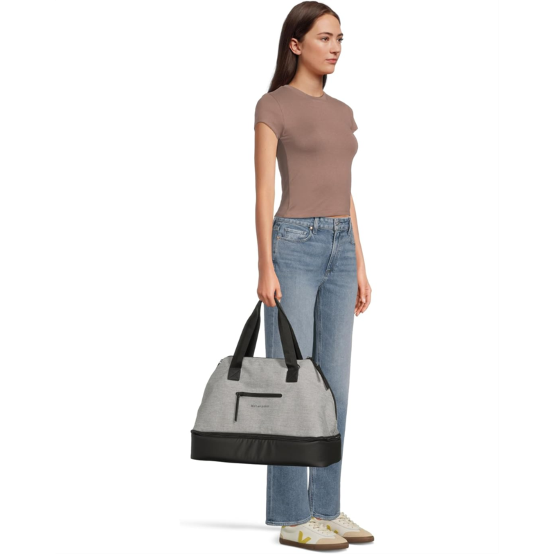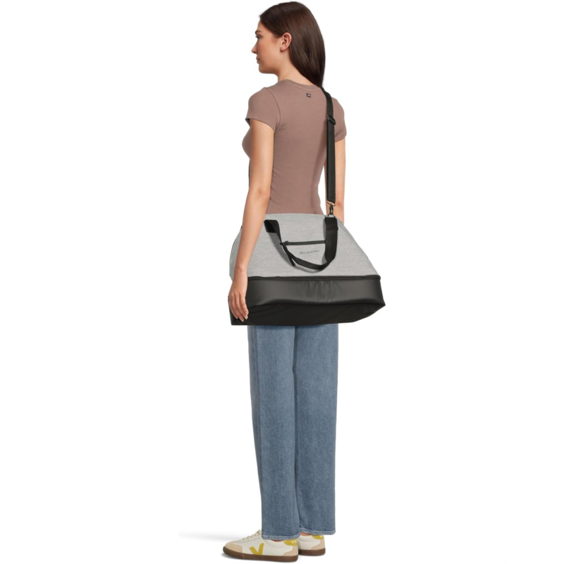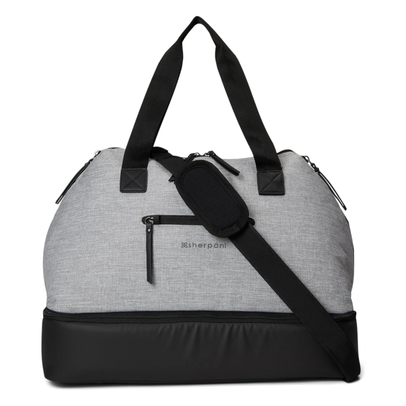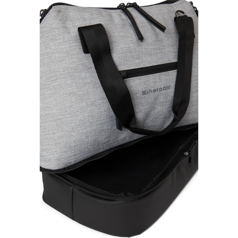 Catering to all your travel needs, the Sherpani Boston AT bag is an expandable weekender bag enhanced with Sherpani anti-theft technology for enhanced security. The expandable design features a detachable bottom compartment ideal for packing shoes or separating laundry. A combination of 100% recycled Melange and ballistic nylon fabrics makes up this lightweight, water-resistant, and durable bag, while still delivering a sophisticated look. Its polyester lining is pale blue which allows easier visibility when searching for items. Designed with a zippered closure, an adjustable shoulder strap, and two top grab handles, this travel bag is an ideal choice for your next vacation.