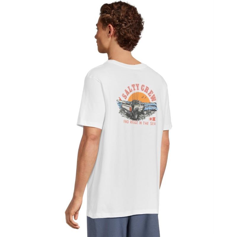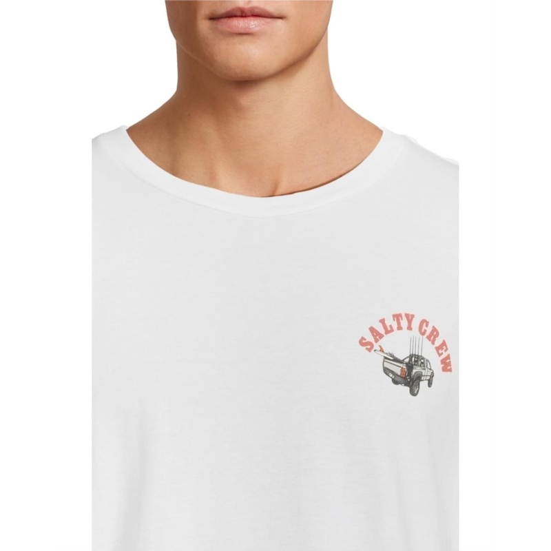 The Salty Crew Lifted Short Sleeve Tee classic comfort for modern man. This short sleeved t-shirt is a 30 singles combed ring spun with screen printed front and back. Featuring crew neckline, regular fit, cool graphic print on the back, brand logo on the front left chest, and straight hem.