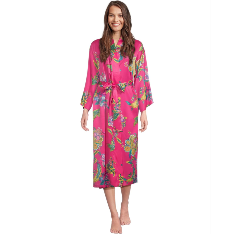 - Wrap yourself in effortless elegance and bold sophistication wearing the N by Natori Festival Satin Robe. Designed with a relaxed fit and long sleeves, this robe drapes beautifully, giving you an instantly chic silhouette. The belt tie at the waist offers a customizable fit, while the below-the-knee length delivers just the right amount of coverage for both comfort and style. Crafted with a luxurious hand feel and satin finish, it caresses your skin with silky smoothness, making every moment feel indulgent. The robe''s beautiful, bold prints add a festival of color and artistry, elevating your downtime with an unmistakably vibrant flair.