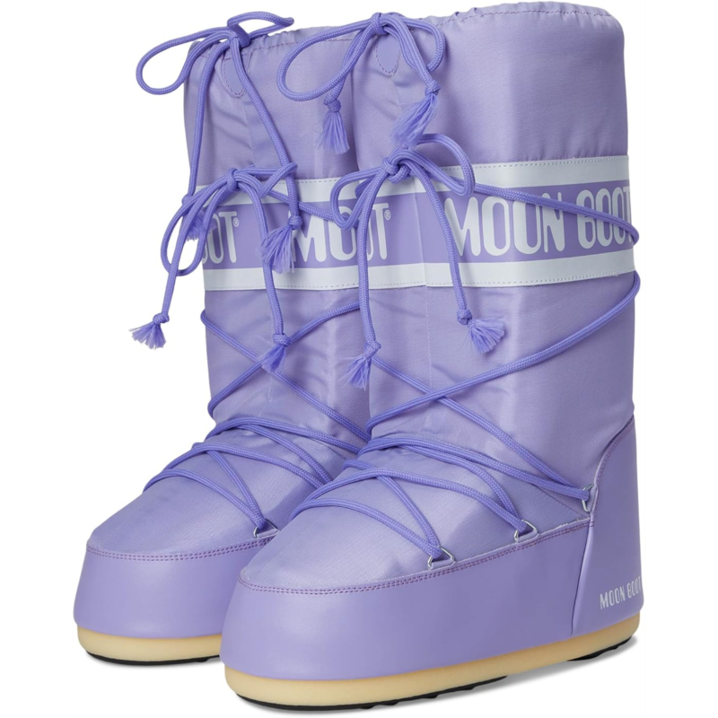 - Iconic design, unmatched warmth in the MOON BOOT Icon Nylon! Elevate your snow style with a durable nylon upper and knee-high design that conquers the cold. Experience the perfect blend of comfort and support with a PU insole and grippy rubber outsole, keeping you steady on icy terrain. The round toe and lace-up closure provide a snug fit, making these snow boots as functional as they are fashionable.