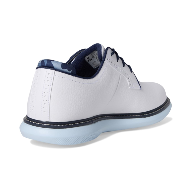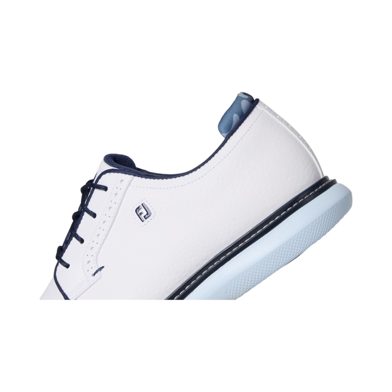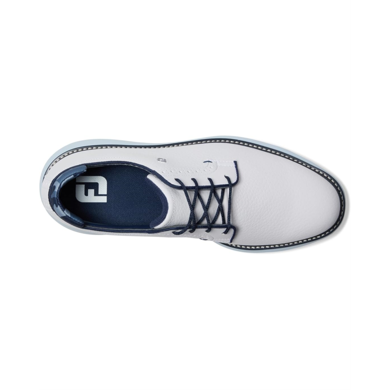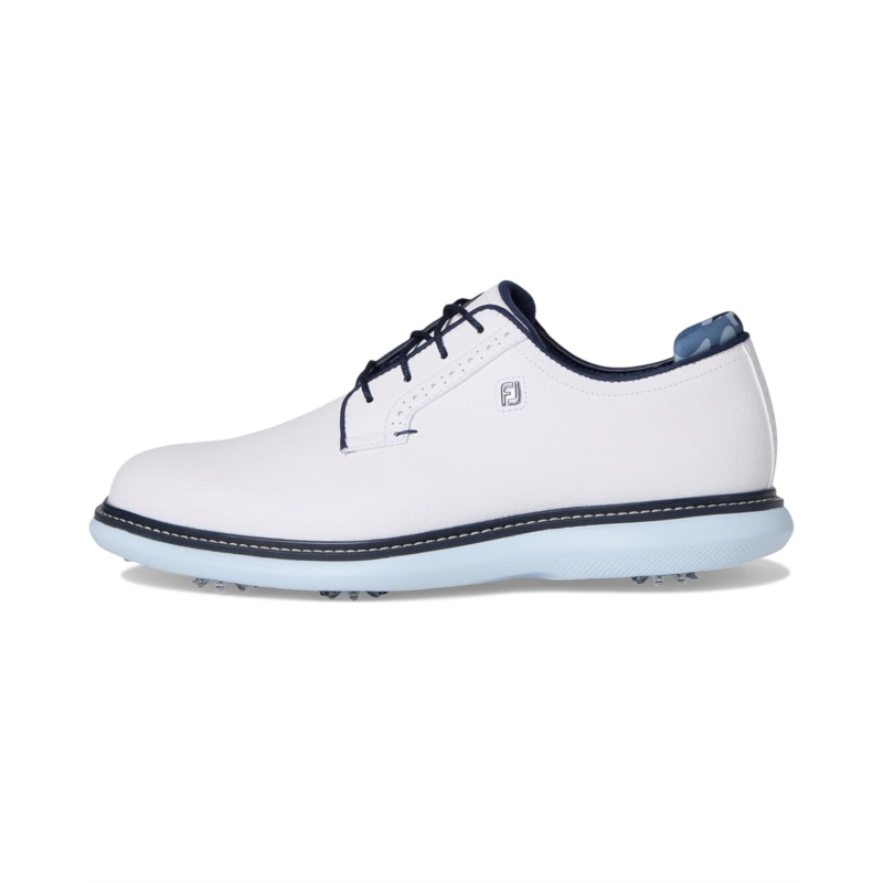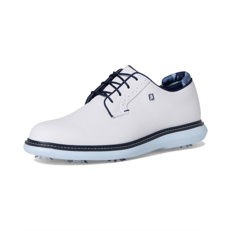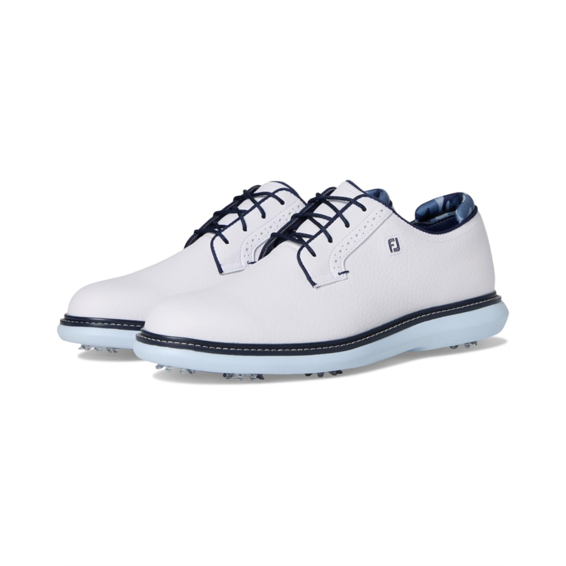 • With the FootJoy Traditions Blucher, you don''t just play, you play in style, comfort, and control. Crafted with a premium Pro|SL-inspired silhouette, this shoe features a supple Prohide waterproof leather upper and breathable linings, ensuring durability and all-day dryness on the course. The Blucher construction offers a more generous fit across the top of the foot, while the Achilles pad enhances heel support for unmatched comfort. Underfoot, the OrthoLite Ultra-Hybrid FitBed and lightweight EVA cushioning midsole deliver cloud-like softness with every step. For traction, the performance TPU outsole is equipped with SoftSpikes Pulsar LP cleats, providing stability and grip round after round. Easy to maintain and built to last, FJ Traditions deliver complete traction, lightweight comfort, and flexibility, making every swing smoother and every stride more confident.