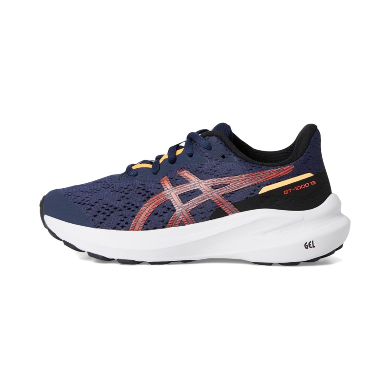 - The ASICS Kids Gt-1000 13 Grade School shoes are versatile stability trainers that are functional for various distances. They have updated the underfoot cushioning to make them feel more comfortable and energetic. A kid-specific last and a sockliner size checker help to accommodate growing feet, while the breathable mesh upper offers a supportive and comfortable foothold. At least 20% of the shoe''s main upper material is made with recycled content to reduce waste and carbon emissions. Their polyester insole and lining provide added comfort. Additionally, the medial forefoot wrap-up synthetic rubber outsole and toe rubber stitch are designed to improve durability. Lastly, the GEL technology of these lace-up shoes provides comfortable cushioning throughout the day.