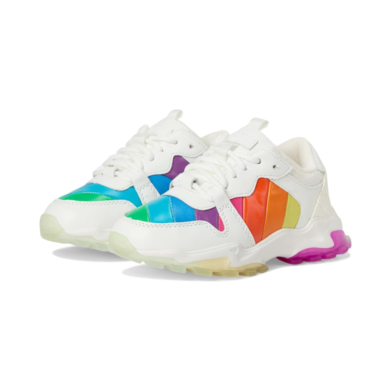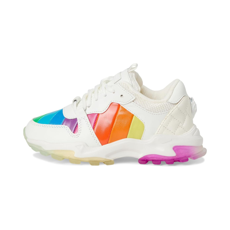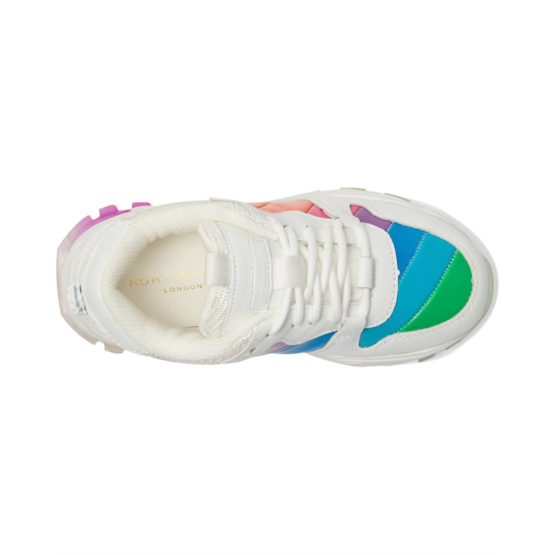 - Feel the difference of innovative style by wearing Kurt Geiger London Kids Mini Lettie Eagle shoes. The shoes have a round toe, padded tongue, and collar, with instep pull-tabs. It has an iconic diagonal rainbow-sewn stripe pattern. The shoes are made of laminated pebble-grain cow leather upper, textile lining, and insole.