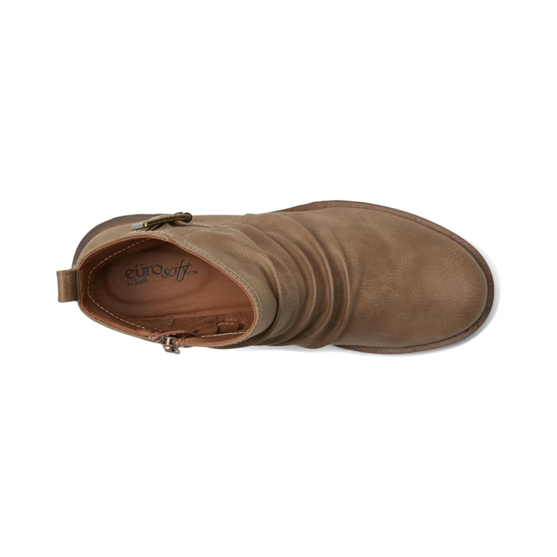 - The EuroSoft Ariya boots are ruched casual lug sole boots that feature a buckle accent for a chic look. These ankle boots are crafted with a polyurethane upper that is styled with a zippered side closure for easy on and off. The EVA insole and fabric lining keep your feet comfortable. Get ready for any adventure or ride wearing these heeled boots.