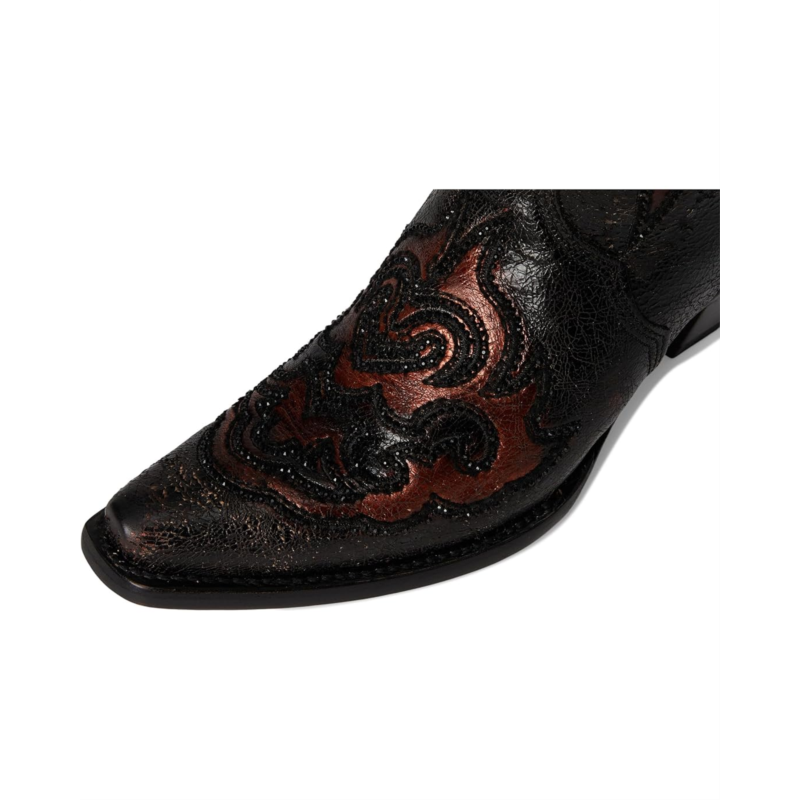 - Chic and comfortable, the Corral Boots A4738 features lady black bronze embroidery and crystals for an eye-catching twist. These knee-high boots are designed with a zippered side closure for easy wear. They are crafted with a leather upper, insole, and lining. These heeled boots make a stylish addition to your footwear collection.