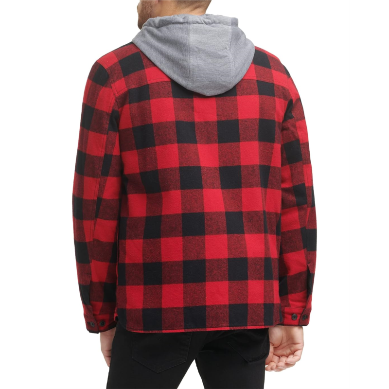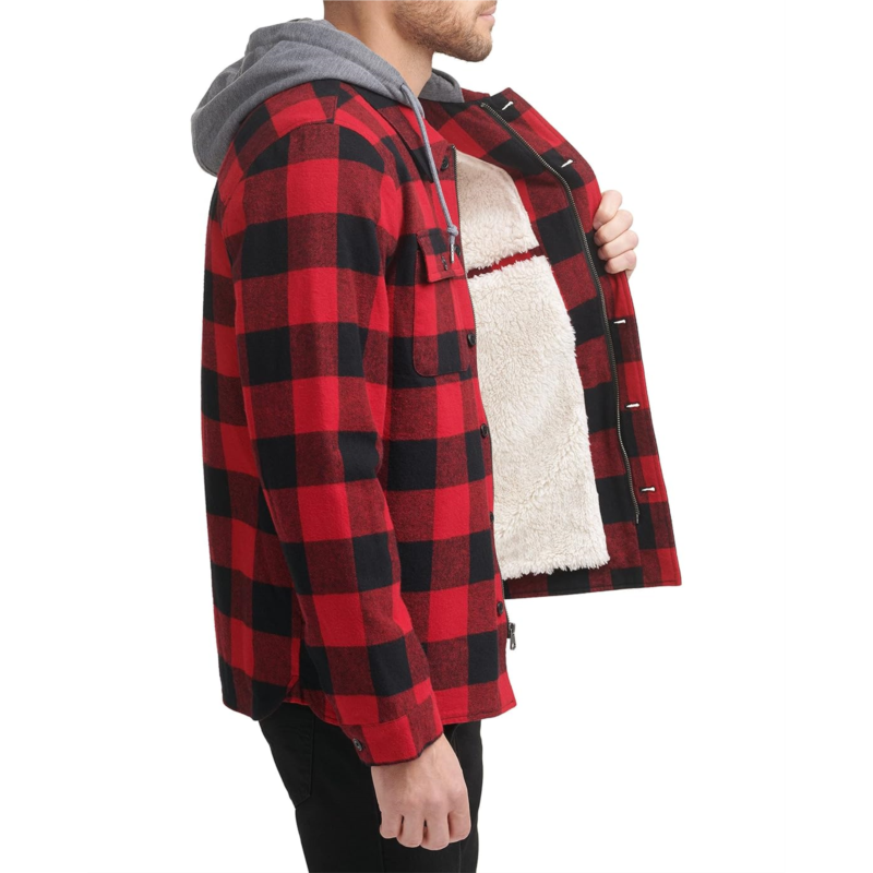 [US] Mens Levis Washed Cotton Shirt Jacket with A Jersey Hood and Sherpa Lining