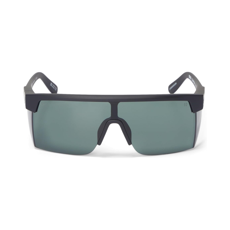 - Style up your look from trails to pool parties and protect your eyes from sun rays wearing Spy Optic Super Flynn Sunglasses. Crafted with a plastic frame, the rectangular-shaped sunglasses feature non-polarized polycarbonate lenses in happy gray green color and pin hinges.
