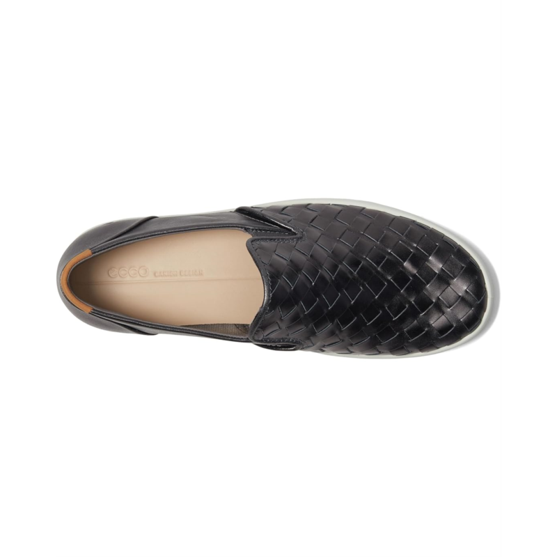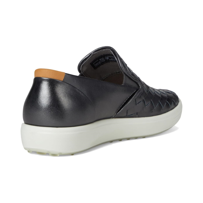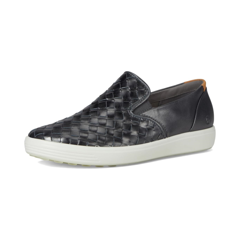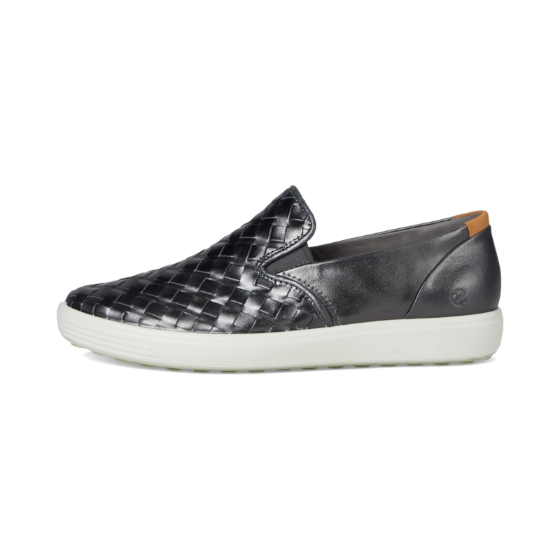 - Experience the simple joy of stepping out in style with ECCO Soft 7 Woven Slip-On 3.0 Sneaker. Designed for the modern woman, these slip-ons come with an efficient elastic closure. Comfy and chic, these are ideal companions for your everyday adventures. Crafted from leather upper, nylon lining, and leather insole, this pair of shoes features round toe, ECCO FLUIDFORM provides soft, flexible and fluid movement within a naturally supportive anatomical fit, removable, leather-covered insole for added comfort and optional extra width when taken out. The elasticized panels ensure the shoe is easy to slip on, lined in textile for softness and breathability.